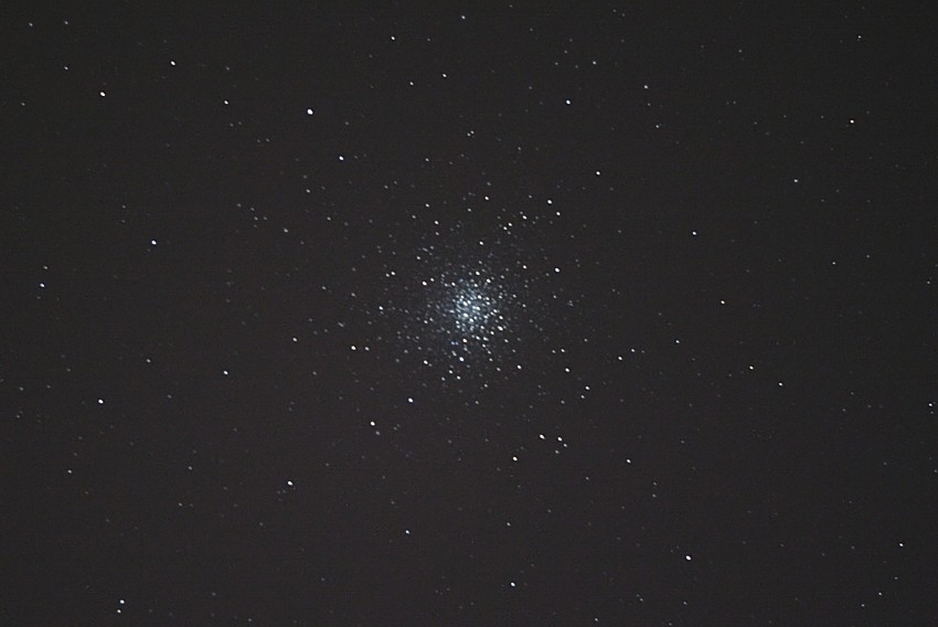 En la segunda salida, me quedé al lado de casa, volví a alinear el telescopio y me puse a fotografiar objetos bastante brillantes, sobre todo cúmulos de estrellas, que son relativamente fáciles de fotografiar con contaminación lumínica. Como me llevé el portátil, aproveché con el Starry Night a buscar objetos, que normalmente no hago, ya que el GOTO no es del todo preciso o la alineación no es muy buena, y normalmente hacen falta mapas detallados de la zona, para poder saber si estas fotografiando la zona del cielo correcta. Decir que ayudó mucho el programa. Me permitió encontrar a Plutón, el asteroide Laetitia, y dos cometas, entre otras cosillas. Aunque en el caso del cometa 22P no aparecía en las fotos, al fotografiar la zona correcta, saqué unas cuantas fotos, ya vería después si lo había fotografiado o no, ya que su brillo en teoría era bastante débil. También fotografié diferentes cúmulos globulares y uno abierto, así como la nebulosa M8. Me quedé sacando fotos hasta el amanecer, y aproveché a observar a Júpiter a Venus y a Neptuno, que aunque pude verlo con muchos aumentos, no logré distinguir mas que un punto, y con mucha turbulencia, por la escasa altura. En Júpiter pude ver un fenómeno mutuo entre dos de sus satélites, Ganimedes y Io, una ocultación parcial del primero por el segundo, pero de muy poca magnitud, pude seguir los satélites según se aproximabas uno al otro hasta unos minutos antes de la teórica ocultación, ya que incluso con muchos aumentos, llegó un momento en el que ya no podía distinguirlos por separado, para mas inri, el telescopio empezaba a empañarse, con lo que no disponía de la suficiente luz para grabar los satélites con mucho zoom. Otro día lo intentaré de nuevo. Con la luz del alba, comencé a recoger todo y una vez terminado, esperé a la salida del Sol, mientras observaba a Venus y Júpiter a simple vista. Júpiter lo logré seguir a simple vista incluso hasta las 7:30, con el Sol ya sobre el horizonte desde unos minutos. es la vez que mas tiempo he podido ver a Júpiter visualmente con la luz solar. Satisfecho con los resultados fui a casa a acostarme.