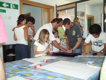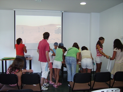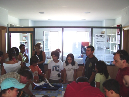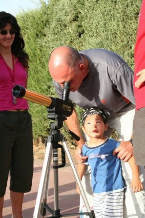 El relato: A las 17 horas comenzamos esta Star-Party, y pusimos un video en lo que iba acercando el público. sobre las 17:30 comenzamos dando un breve avance de las actividades y rápidamente comenzamos con los talleres de manualidades. Tanto pequeños y mayores disfrutaron realizando unas gafas de 3D para ver las fotografías que habíamos preparado. Fue dinámico y divertido, explicamos los conceptos básicos de la visión en · dimensiones y quedaron sorprendidos con algunas de las fotos expuestas en el proyector que puso el ayuntamiento. Expresiones como "Mira !!!! lo puedo tocar con la mano!!" o "parece que se sale de la tele!!!" son algunas de las que se podían escuchar a medida que pasábamos las fotografías.