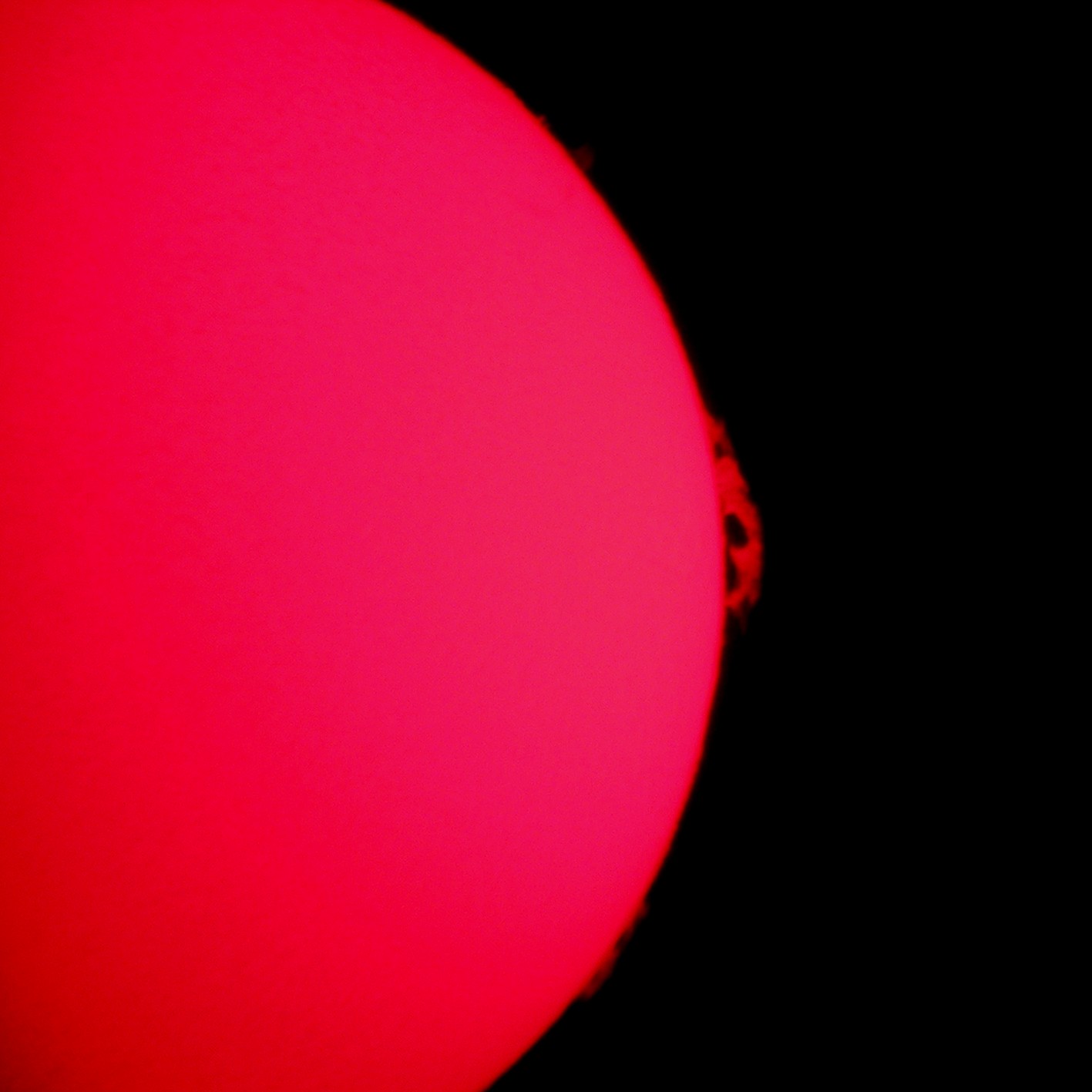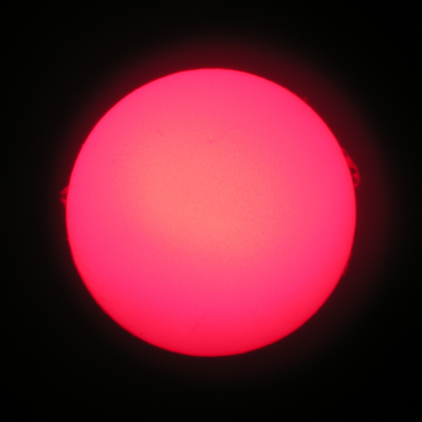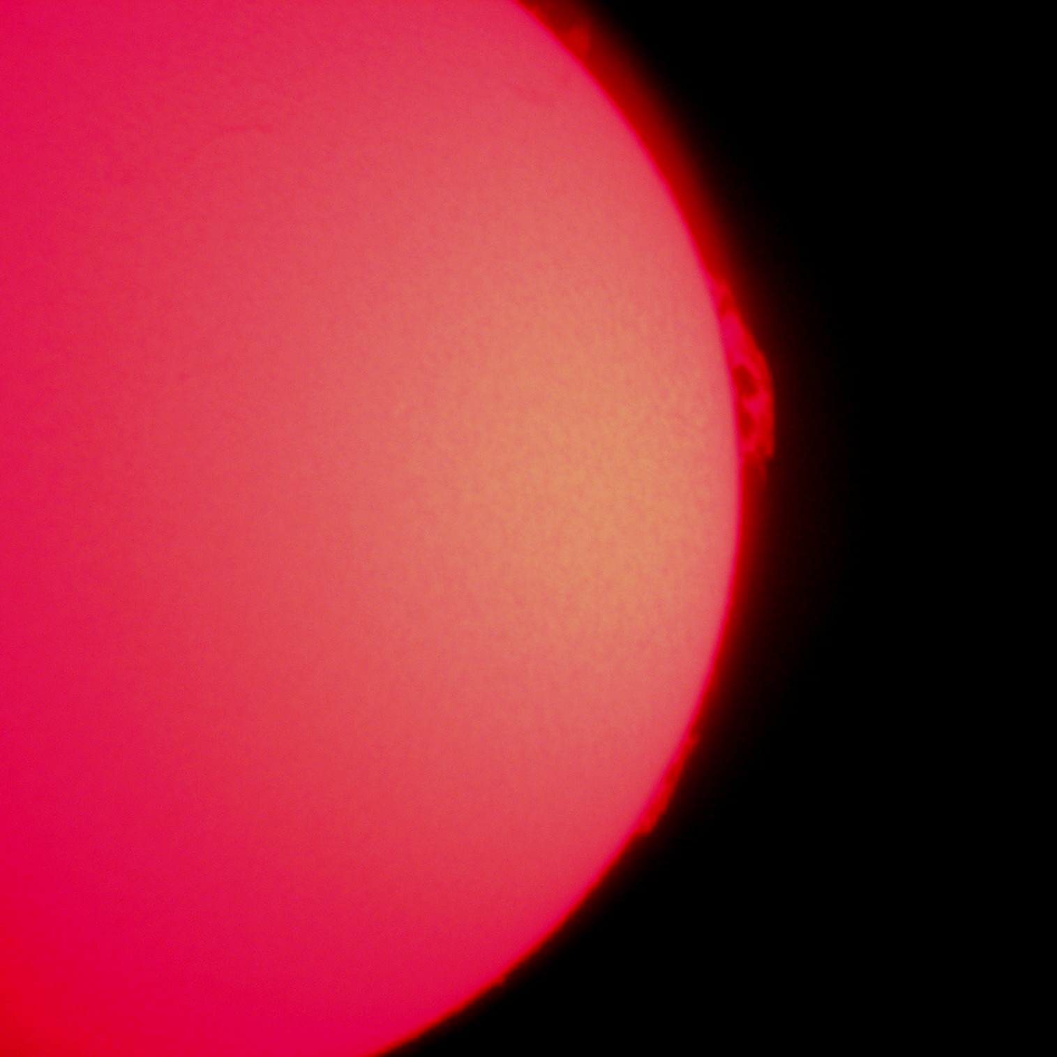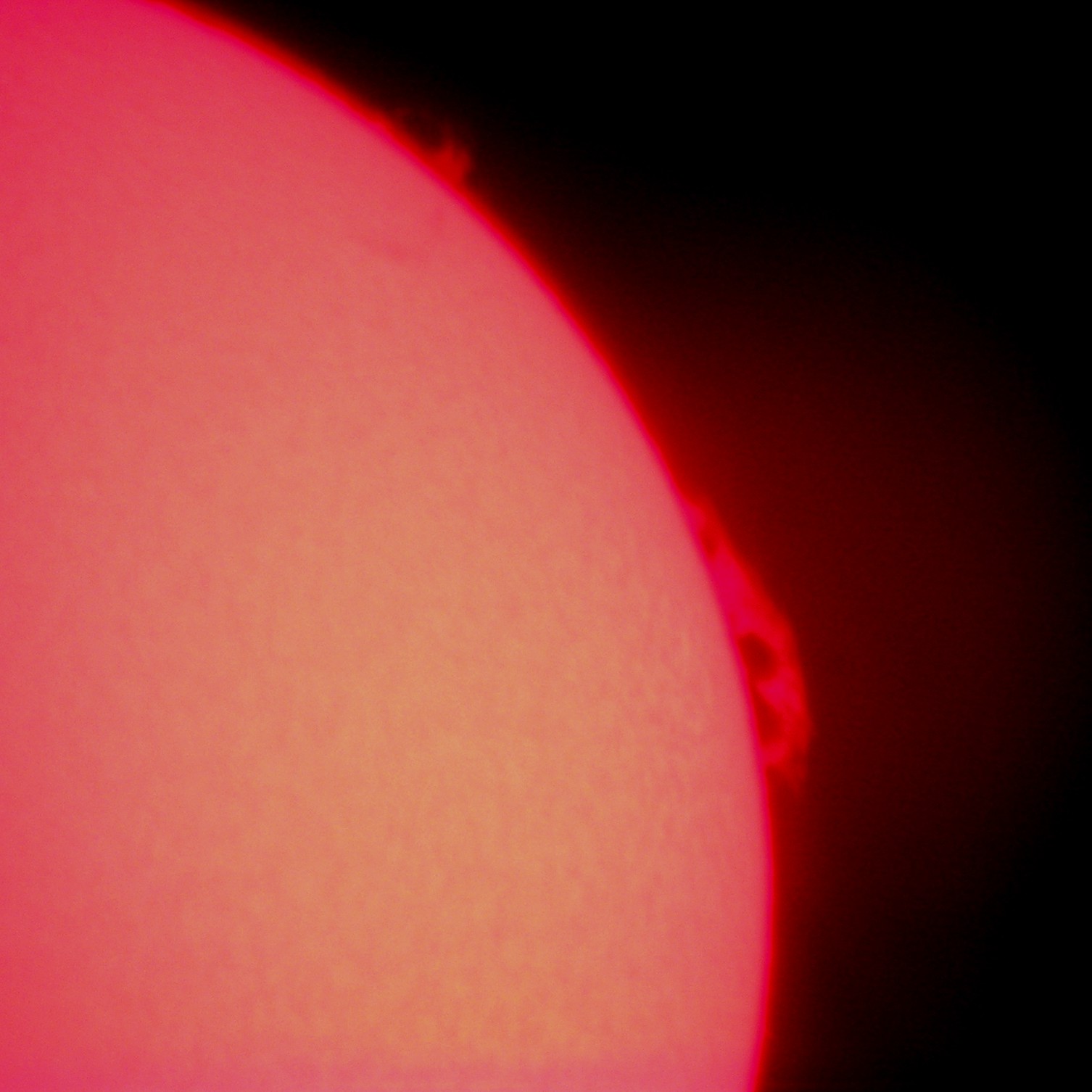 El relato: Durante esta observación nos dedicamos principalmente a fotografiar el Sol y a observar el cambio de la forma y tamaño de las protuberancias. Distinguimos 2 grandes protuberancias una a cada lado del Sol, otra mediana y baja por debajo de la mas grande y otra pequeña por encima de la misma. Donde mas se notaron los cambios fue en la mayor de ellas, cambió de forma sustancialmente desde el inicio de las observaciones al final. Las pequeñas tambie´n dejaban ver pequeños cambios aunque menos pronunciados. La protuberancia mas grande no solo cambió de forma, sino de brillo, disminuyento notablemente su brillo a lo largo de la observación. Por la tarde seguimos las obsevaciónes deste otro lugar, también en Salamanca, y pudimos capturar algunas imágenes bastante buenas hasta que las nubes nos impidieron seguir. Una vez ocultado el Sol capturamos algunas imágenes de la Luna.