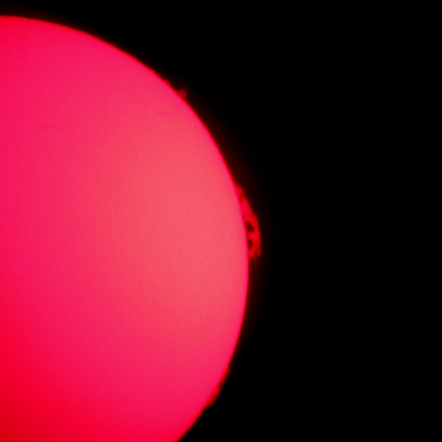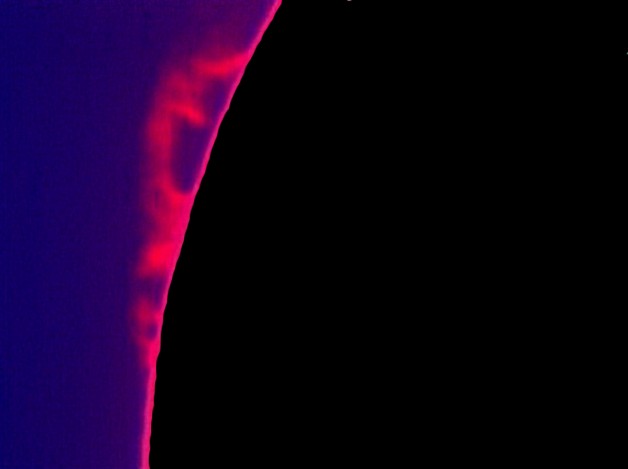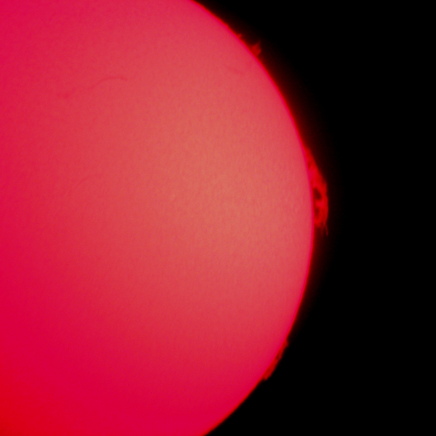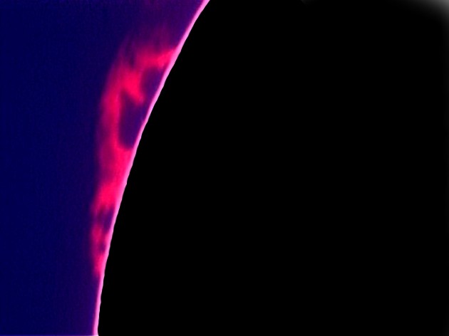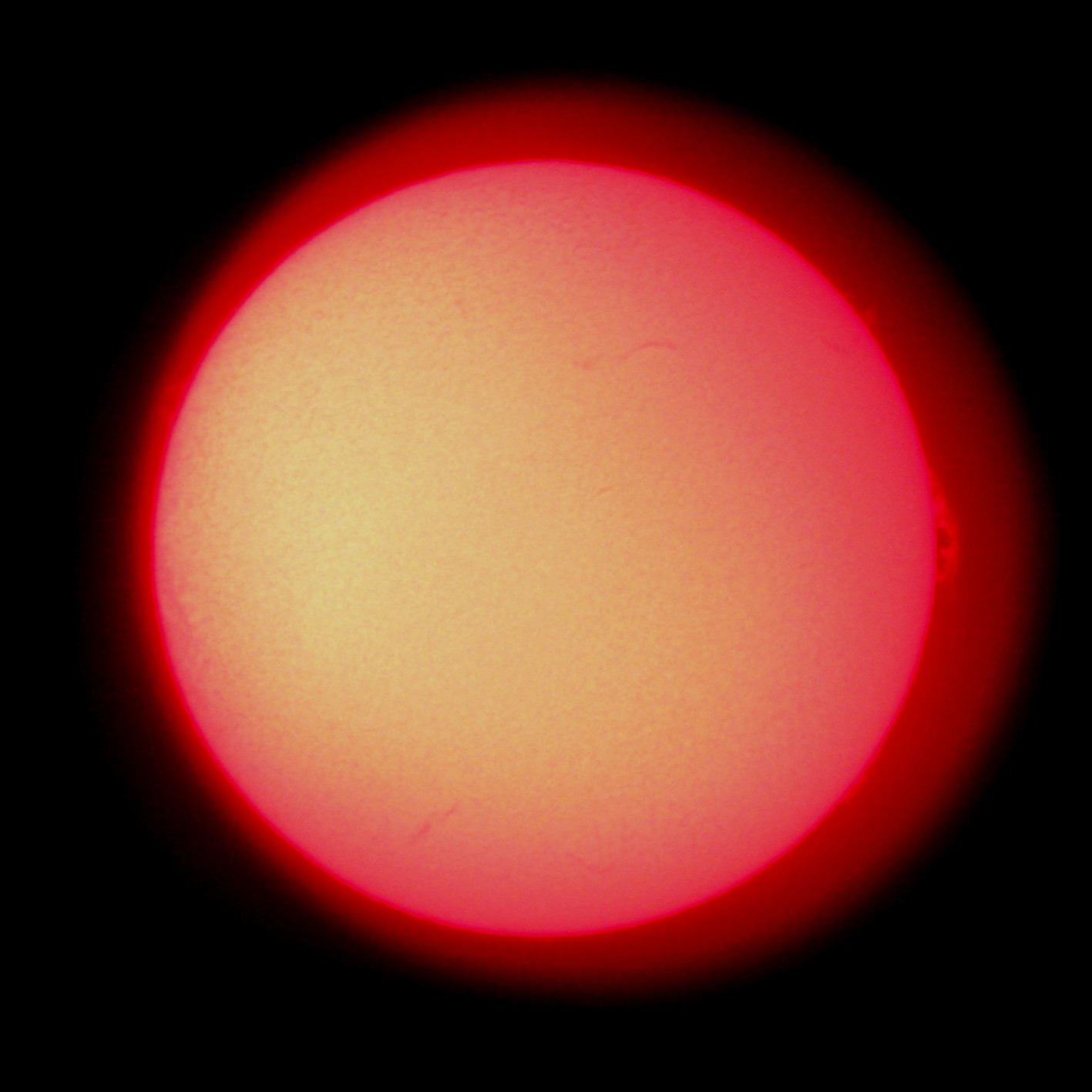 El relato: Durante esta observación nos dedicamos principalmente a fotografiar el Sol y a observar el cambio de la forma y tamaño de las protuberancias. Distinguimos 2 grandes protuberancias una a cada lado del Sol, otra mediana y baja por debajo de la mas grande y otra pequeña por encima de la misma. Donde mas se notaron los cambios fue en la mayor de ellas, cambió de forma sustancialmente desde el inicio de las observaciones al final. Las pequeñas tambie´n dejaban ver pequeños cambios aunque menos pronunciados. La protuberancia mas grande no solo cambió de forma, sino de brillo, disminuyento notablemente su brillo a lo largo de la observación. Por la tarde seguimos las obsevaciónes deste otro lugar, también en Salamanca, y pudimos capturar algunas imágenes bastante buenas hasta que las nubes nos impidieron seguir. Una vez ocultado el Sol capturamos algunas imágenes de la Luna.