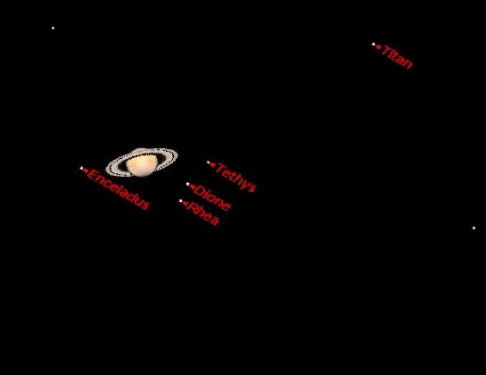 | saturno sobre-expuesto para ver los satélites | Simulación del aspecto de Saturno con el programa starry night |