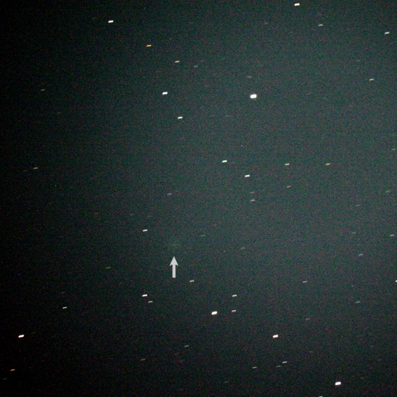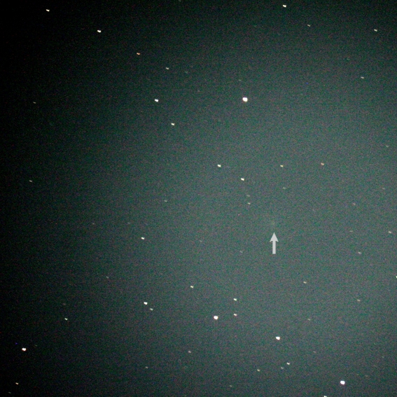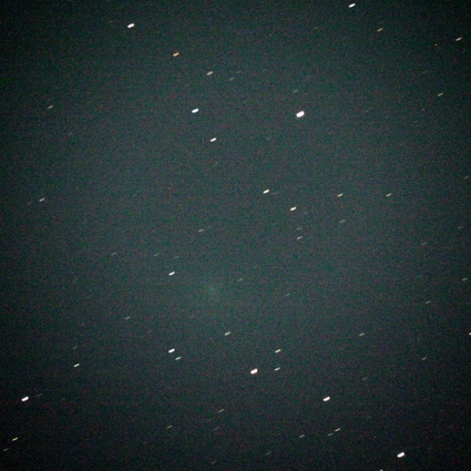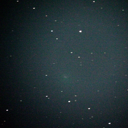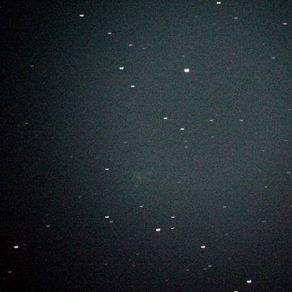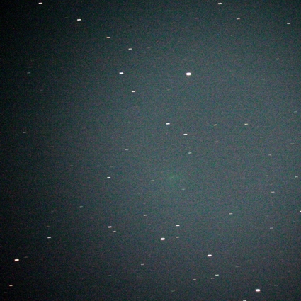 Mientras, al pie del telescopio me quedé haciendo algunas fotos del cometa 177P/2006 M3 (Barnad 2) que aunque en un principio se pensaba que era nuevo, se ha demostrado que en realidad se trata de un cometa antiguo recuperado. Su periodo es de 120 y fue descubierto en el año 1889. El cometa esta noche se encontraba en la constelación de Hércules brillando con una magnitud aproximada de +8.5 y con un color verdoso. Observándolo visualmente por el telescopio ni siquiera aparecía en el ocular, pero si lo hizo cuando sacamos las fotografías y se veía perfectamente en el visor de la cámara de fotos. A lo largo de la noche pudimos apreciar el movimiento del cometa con respecto a las estrellas de fondo al comparar las fotografías.