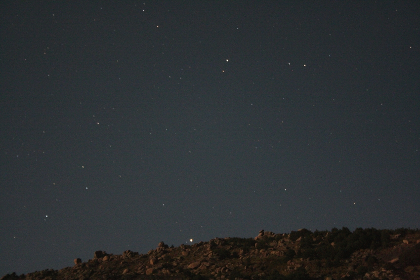 De estrellas también sacamos algunas fotos interesantes. Están sacadas con tiempos de exposción más cortos, del orden de pocos segundos, la uqe menos la de Mizar y Alcor, para que el brillo de Mizar no tapara a su compañera.