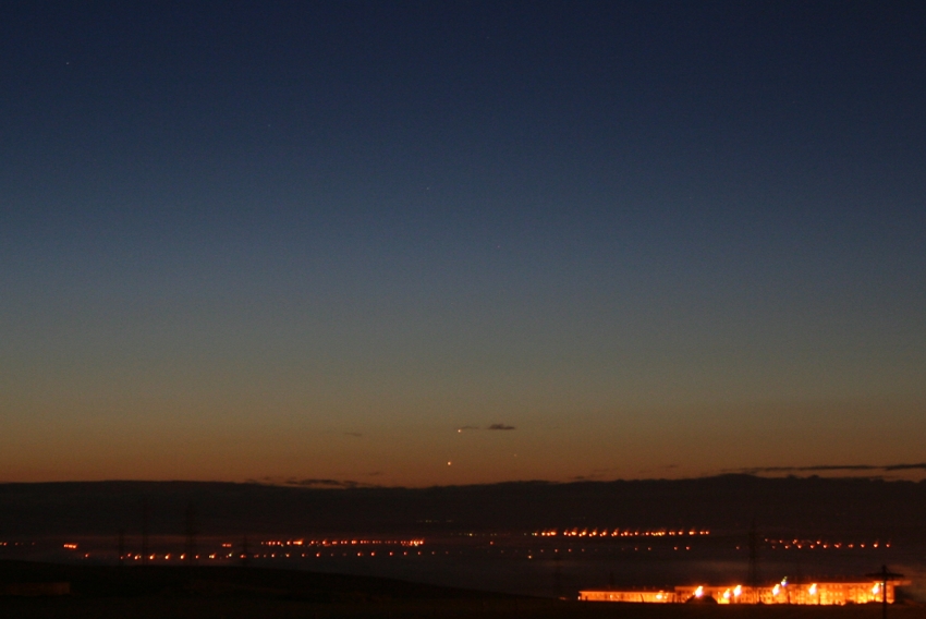 El relato: Después de estar casi un mes sin hacer ninguna salida por culpa de las nubes, por fin esta noche han dado un pequeño respiro y nos ha permitido ver la conjunción planetaria. Ayer hicimos un intento de salida, pero a causa de las nubes recogimos todo y fuimos a casa. Hoy por el contrario, solamente a estado presente el frío, pero aunque era notable, no fue lo suficiente como para hacernos fallar en la salida.