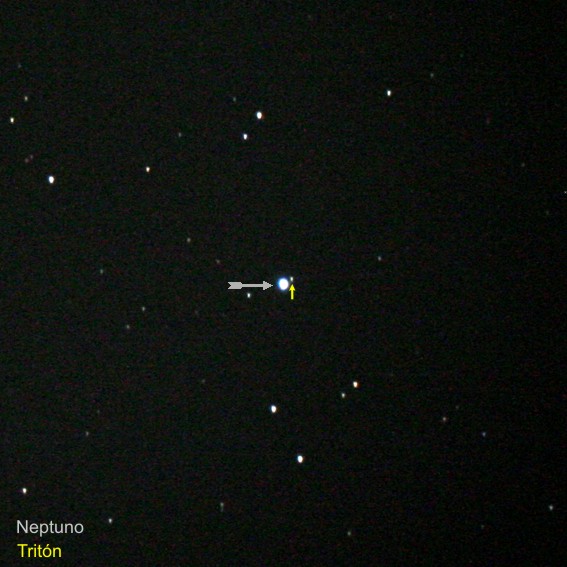 Vamos ahora con los planetas Urano y Neptuno, fotografiados hoy por primera vez por nuestra asociación. En la segunda foto de Neptuno se puede apreciar incluso su satélite Tritón
