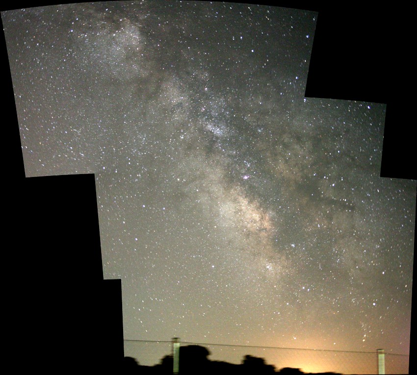 Y para terminar una panorámica que hacía tiempo queríamos tener. Una composición de 3 fotografías de parte de la Vía Láctea. Las fotos han sido tomadas con el objetivo de la cámara con 3 minutos de exposición y guiado automático. alineadas con el programa Autostich y retocadas con el Corel Photopaint.