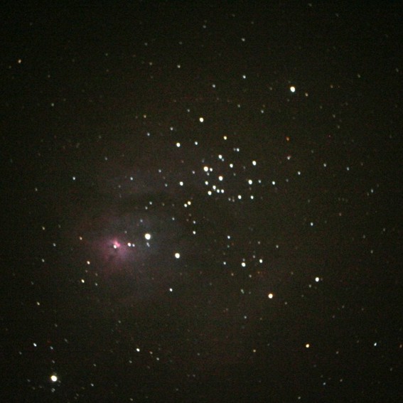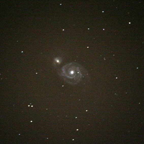 El relato: Al llegar, montamos el telescopio, y comenzamos a realizar pruebas para enfocar correctamente la cámara Canon 350D. Al poco llegó una pareja de la guardia civil, porque al parecer dieron el aviso de que dos personas estaban cerca de unas parcelas con linternas. El caso es que les contamos lo que hacíamos e incluso se acercaron a echar una miradita a Júpiter, que por cierto les gustó bastante. Poco depues se fueron y empezamos a realizar las fotografías de cielo profundo. al no tener nada apuntado, intenté recoerdar algunos objetos fáciles de observar, y nos dedicamos a ello, a veces con mala suerte por culpa de las nubes altas que iban cubriendo el cielo por zonas. A las 2:15 empezaba a empeorar el tiempo y decidimos recoger. Al llegar a casa, monté de nuevo el telescopio por si despejaba, pero se mantuvo la inestabilidad hasta el orto solar. Aun así conseguimos algunas fotos interesantes.