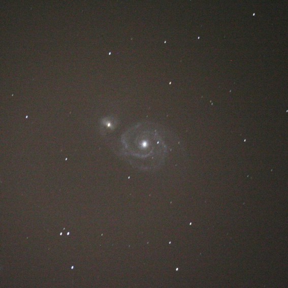 El relato: LLegamos y montamos todo en seguida, Estuvimos viendo con los prismáticos Júpiter y diversos objetos de cielo profundo. Con Júpiter era maravilloso, con la claridad que se veía junto con sus satélites. Con el C5" estuvimos realizando algunas capturas de Júpiter, pero debido al mal seguimiento que conseguimos esa noche no pudimos ir a por mas objetos. Con el C8" estuvimos viendo y fotografiando diversos objetos de cielo profundo. Lo primero fuimos a por el cometa 73/P, fotografiamos y vimos los dos fragmentos principales, el C y el B, los localizamos sin problemas tanto con el telescopio como con los prismáticos. Y luego nos dedicamos a ver galaxias y cúmulos de estrellas. Las fotografías que realizamos de ellos fuero hechas la mayoría con 2 minutos de exposición y con la Canon 350D acoplada a foco directo con el C8" utilizando el reductor de focal. Esta era la primera vez que veía algunas de las galaxias fotografiadas, como es el caso de M 81, M 82, M 51 etc... Incluso hubo en una de las observaciones visuales con el ocular de 40mm se veían varias manchitas borrosas, que al sacar luego la fotografía aparecieron varias galaxias en la misma foto.