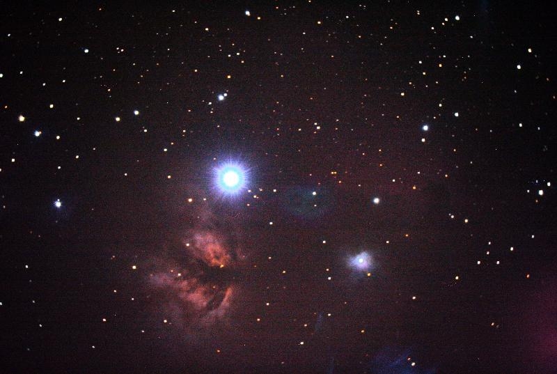 El relato: Esta vez fuimos a una zona de la provincia de Salamanca donde habíamos ido otra vez hace un año y a demas obtuvimos muy buenos resultados. Al llegar, tranquilamente fuimos montando el telescopio y comenzamos a observar. Lo primero que vimos fue la Luna, y Juan Carlos aprovechó para inmortalizarla con la luz cenicienta. Una vez que se ocultó fimos recoriendo diversos objetos del cielo profundo. visitamos M 42, NGC 2264 (arbol de navidad), NGC 2024 (cabeza de caballo) y la nebulosa de la llama. Durante la noche alcanzamos una temperatura mínima de -6.4 grados centígrados, aunque como ibamos bien abrigados, no molestaron demasiado. Al principio de la noche Orión estaba bajíta, pero poco a poco fue ganando altura en el cielo. También vimos algunas estrellas fugazes, aunque no apuntamos ningun dato de ellas. Una vez retratados los objetos selecionados, recogimos y regresamos a Salamanca.