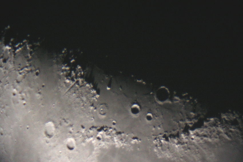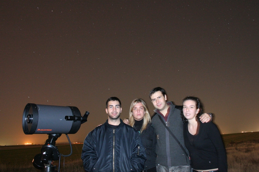 El relato: Ayer fue el cambio de horario de Verano a Invierno, con lo que podemos disfrutar del cometa C2006 M4 un poco antes. Lo que si molestó bastante fue la presencia de la Luna , que aunque por un lado gustó a los visitantes, por el otro entorpeció bastante en la observación y fotografía del cometa y del cielo profundo. Al llegar montamos el telescopio y lo alineamos sin demasiados problemas, aunque un poco pero que ayer. Lo primero fue dirigirnos al cometa, que se veía bastante bien, y luego vimos algunos objetos de cielo profundo, como M 13, M 27, M57, M31 etc..., Lo que más éxito tuvo en los invitados fue M 57, M27 y M31.y por supuesto La Luna. También observamos la Luna con diferentes aumentos, con y sin reductor de focal, donde pudimos admirar las maravillas de su superficie. Lo mas destacable del terminador fue la zona de los montes Alpes, los cuales proyectaban de manera espectacular su sombra por las llanuras adyacentes. Utilizando muchos aumentos en esa zona lunar, a veces daba "miedo" de estar allí. Nos imaginamos en la superficie lunar y a mas de uno se le quitan las ganas de ir, de estar allí solos, en la oscuridad. Aunque desde la Tierra se vea precioso. Lastima que no pudiéramos conseguir buenas fotografías.