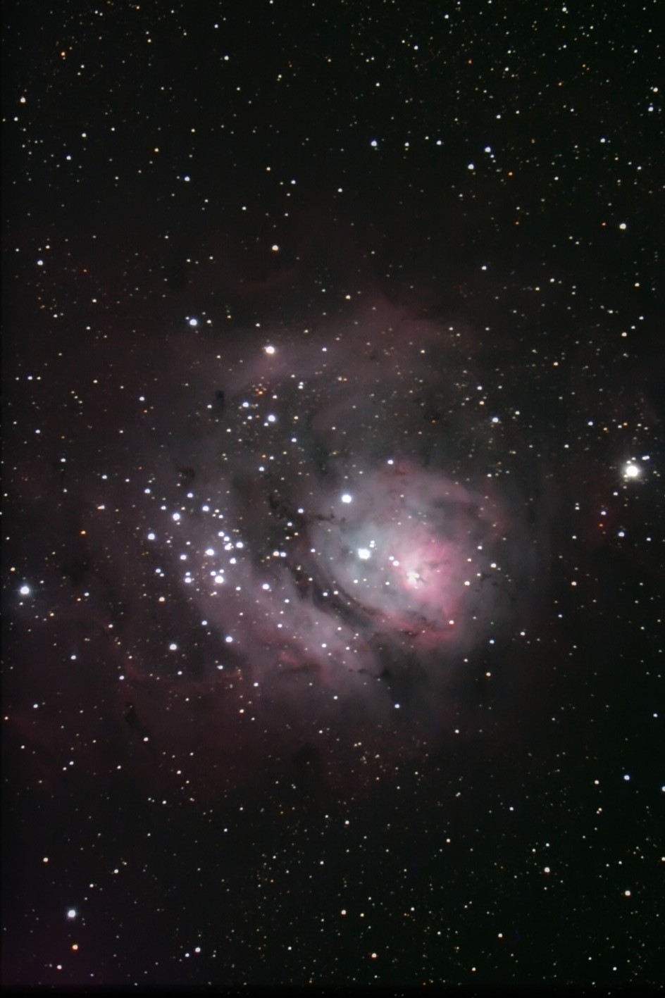 El relato: Nada mas llegar me pegué un pequeño susto y pensaba que me quedaría sin hacer fotos esta noche. Al sacar todo el equipo me di cuenta de que no había traído la fuente de alimentación para el telescopio, (power tank) . pero poco despúes me dí cuenta que podíamos enchufarlo al coche, jaja, claro.. como nunca lo hago, no se me había ocurrido en un principio. Asique después del susto montamos los telescopios.Vimos pasar un par de iridiums y bastantes satélites. La verdad es que apunté a Júpiter, pero no lo llegué a observar, puesto que lo hice ya con la cámara de fotos acoplada y solo saqué un par de fotos para enfocar. Después me dediqué a sacar fotos de cielo profundo con el C8, entre otras M8, M2 M25, M13, M31. Mientras Manuel y yo observabamos con el ETX 70 recuerdo ver M13 estupéndamente. También Manuel sacó alguna foto con la Canon 400D sobre un trípode y despues en piggyback.