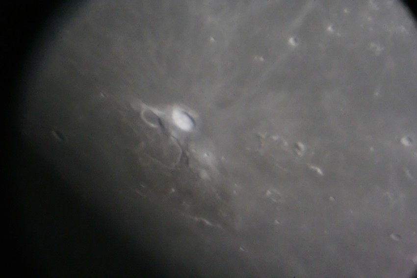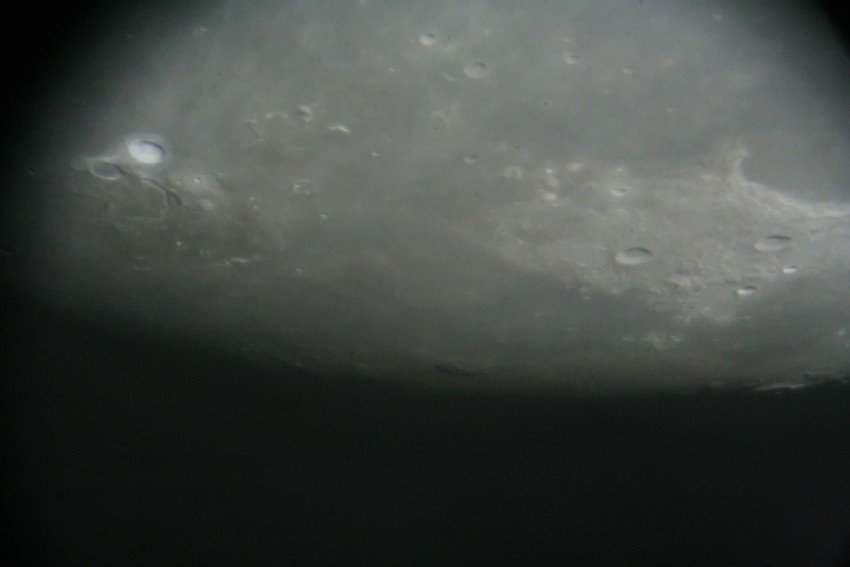 El relato: Esta tarde vimos Mercurio, aunque con una calidad pésima, a penas se podía distinguir la fase con ocular de 12mm por la aberración y por el seeing, por lo que ni siquiera probamos con mas aumentos. De las fotos, mejor ni hablamos, salía un pequeño circulo de tres colores, rojo, blanco y azul por las malas condiciones de visibilidad. Después pasamos a ver Marte que se veía regular, se dejaba distinguir el casquete polar, y algún detalle de la superficie, pero sin mucha nitidez, al usa muchos aumentos la imagen perdía mucho. La Luna se portó mejor, pudimos ver algunos detalles de la superficie bastante curiosos, y fotografiamos algunos de ellos. Lo malo de esta salida fue el no tener la cámara para grabar algún pequeño vídeo y coger los fotogramas y la humedad, que se dejó sentir rápidamente. Sobre las 20h y con los telescopios ya empañados, recogimos. El pequeñín (ETX70) se portó bien, estuvimos viendo la Luna bastante decente e incluso Marte se veía moderadamente bien usando muchos aumentos.