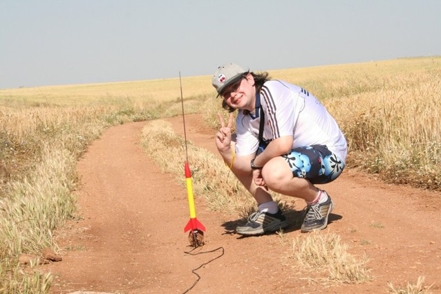 | David posando junto al cohete poco antes del lanzamiento | Cuenta atrás | Salió disparádo y solo conseguimos una foto del humo | ||