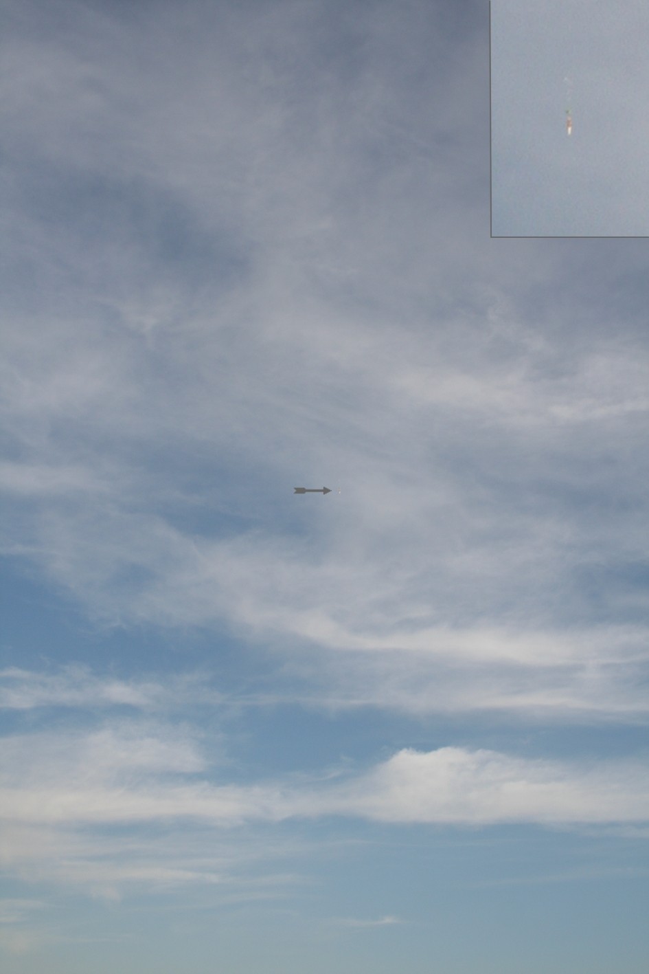 | Altitud conseguida | 800 metros (aproximadamente) No medido con altímetro, calculado a partir de las observaciones visuales y el tiempo de retorno al suelo | |||