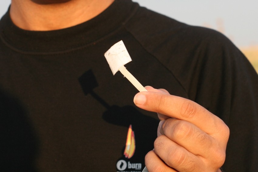 | Notas | El lanzamiento tuvo un retraso de 2 segundos desde que apretamos el disparador, por motivos que aun desconocemos. El despegue fue correcto y se elevó casi verticalmente. Debido a que se soltó la sujeción de las dos partes del cohete durante el vuelo, y que la goma se enredó en el paracaídas, este no se pudo desplegar y el cohete cayó al suelo. En el impactó la cámara de vídeo se rompió y no pudimos registrar nada del vuelo, mas que las fotos y vídeos que tenemos desde el suelo. El pegamento que sujetaba la goma con la parte inferior del cohete no aguantó lo suficiente. Este fue el problema de la misión y que conllevó al fracaso de la misma. | |||