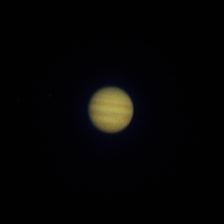 En la segunda parte de la salida me dediqué a Júpiter, para sacarle elgunos video y fotografiarlo, Las fotografías fueron con la CanonEOS 350D por proyección de ocular de 12, 6 y 4mm pero ninguna de las fotos me convence, de hecho ni siquiera las que puedo en la memoria. Lo que si quedó bien fueron los vídeos que grabé con la cámara de video sony handicam,que aunque costó un poco meter a Júpier en el campo de la cáamra, una vez conseguido fue fácil grabarlo. Luego extraje los fotogramas y los alinee con el programa registax para obtener las fotografías. Io y Europa estaban cerca del planeta y también era visible la gran mancha roja, que aunque visualmente no llegué a verla, si aparece tímidamente en las fotografías. Despues dirigí la cámara , esta vez sin telescopio hacia el cielo Sur, para fotografiar el paso de la Nave china tripulada Shenzhou 7, la cual vi el lanzamiento en directo ayer por la televisión China, esta noche se podía ver pasar por Madrid y con una magnitud respetable (+1.9), habrá algún paso mas, pero con menos magnitud visual. Saqué algunas fotos de unos pocos segundos de exposición por la gran contaminación lumínica de Madrid, lo justo para poder fotografiar la nave. La nave lleva 3 astronautas chinos y mañana realizarán un paseo espacial, esta es la primera vez que 3 astronautas chinos van al espacio y también es el primer paseo espacial de la agencia china. y 3 vuelo tripulado chino. ma ha hecho ilusión verlo, puesto que esta nave solamente estaré 3 días en el espacio.