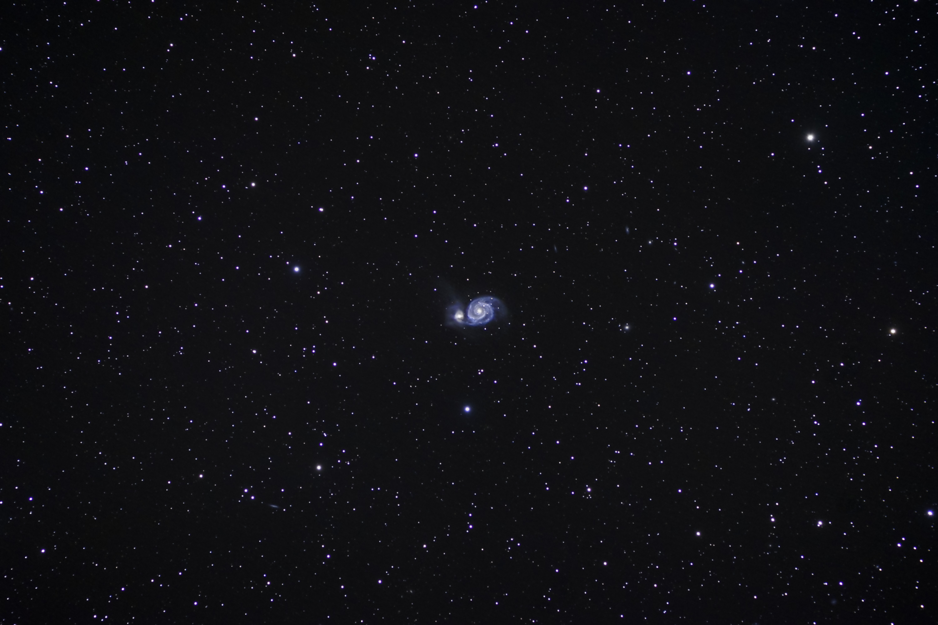 Después de los cometas hice una secuencia a la galaxia NGC4236, a M51 y los respectivos darks mientras hacía tiempo a que apareciera la Luna para ver esa conjunción tan esperada. También intenté alguna nebulosa más, perro el guiado era malo en esas zonas y tuve que desistir. Todas las fotos con la Sony A7s y el ED80, aunque después cambié de equipo y le tiré alguna foto más con la Canon EOS 550D a M51 probando unos filtros de contaminación lumínica y también al cúmulo globular M5 y al cometa C/2020 A2 (Iwamoto)