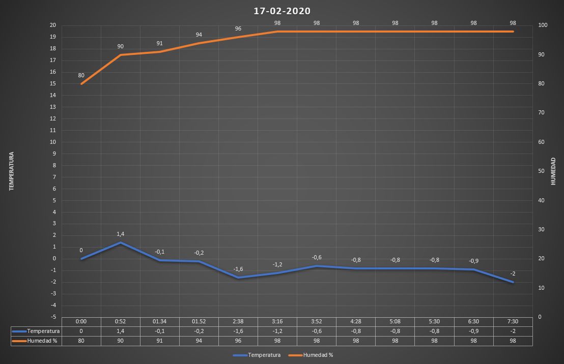 Contaminación lumínica: Se tomaron varias medidasde contaminación lumínica en el cenit, obteniendo unos valores de entre 21.45(a las 01:12) y 21.50 (a las 02:41)