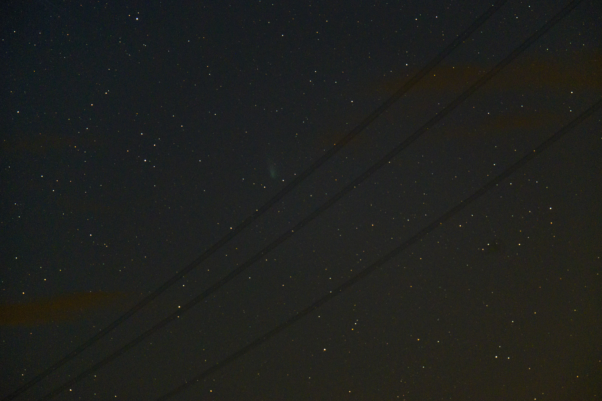 Otra foto más del cometa C/2020 F8, realizada unos minutos antes de mover la montura, donde se aprecia la "mala suerte" que tuvimos al estar el cometa tan cerca de los cables |