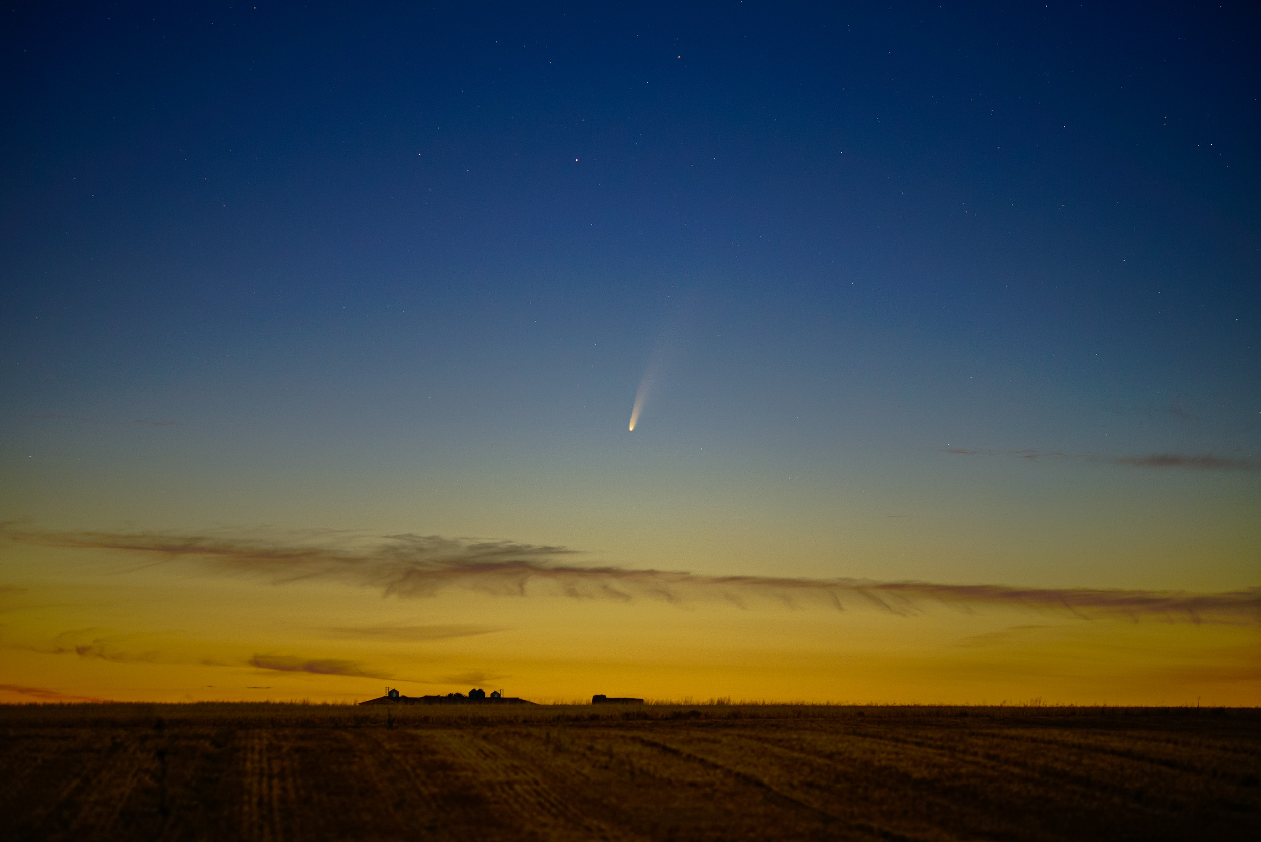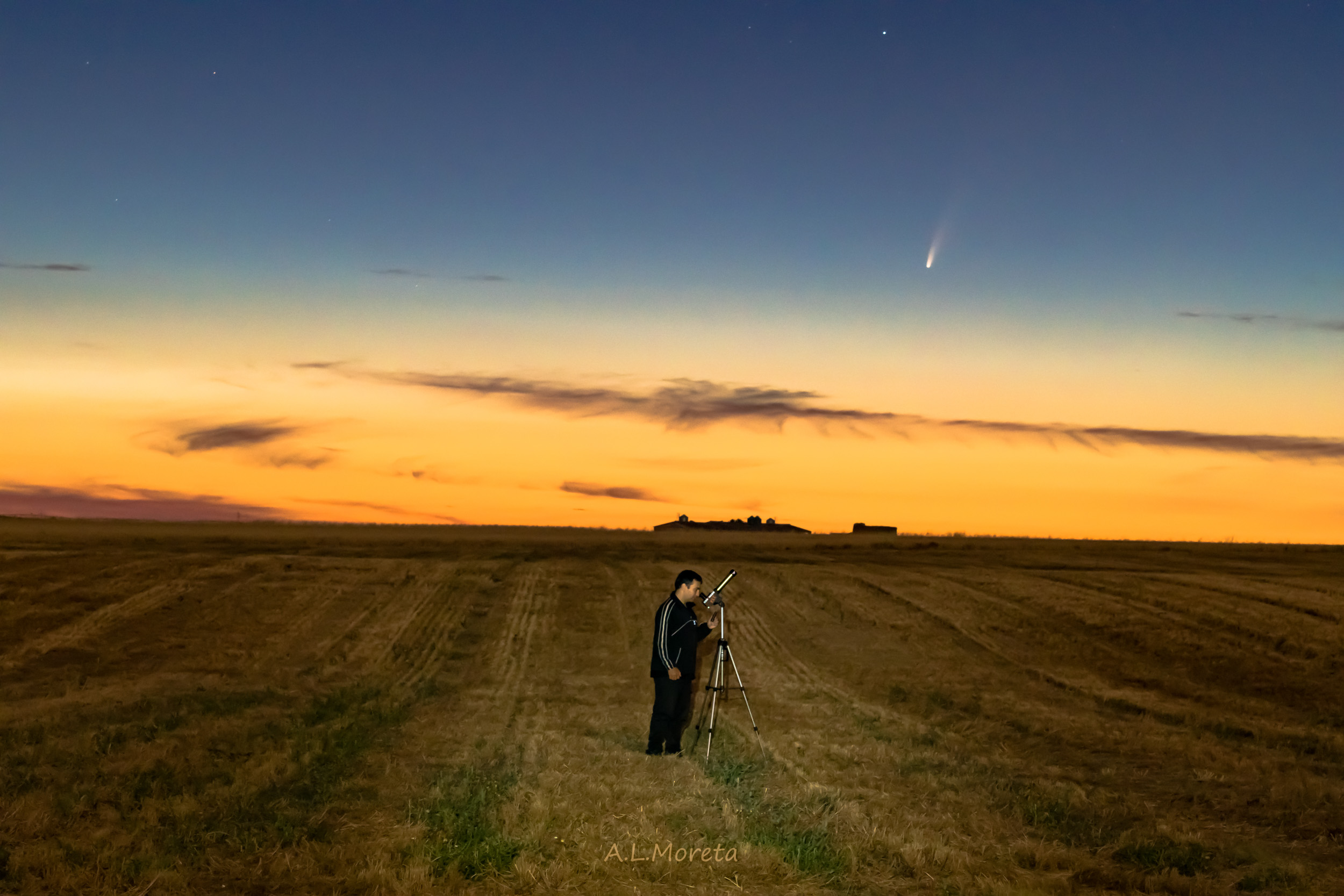 El relato: Por quinto día consecutivo hemos salido en busca del cometa C/2020 F3 (NEOWISE). Y sin lugar a dudas ha sido el mejor de todos ya que el cometa se podía ver en relativa oscuridad. Llegamos un poco antes que los otros días ya que tenía que montar bastante equipo.