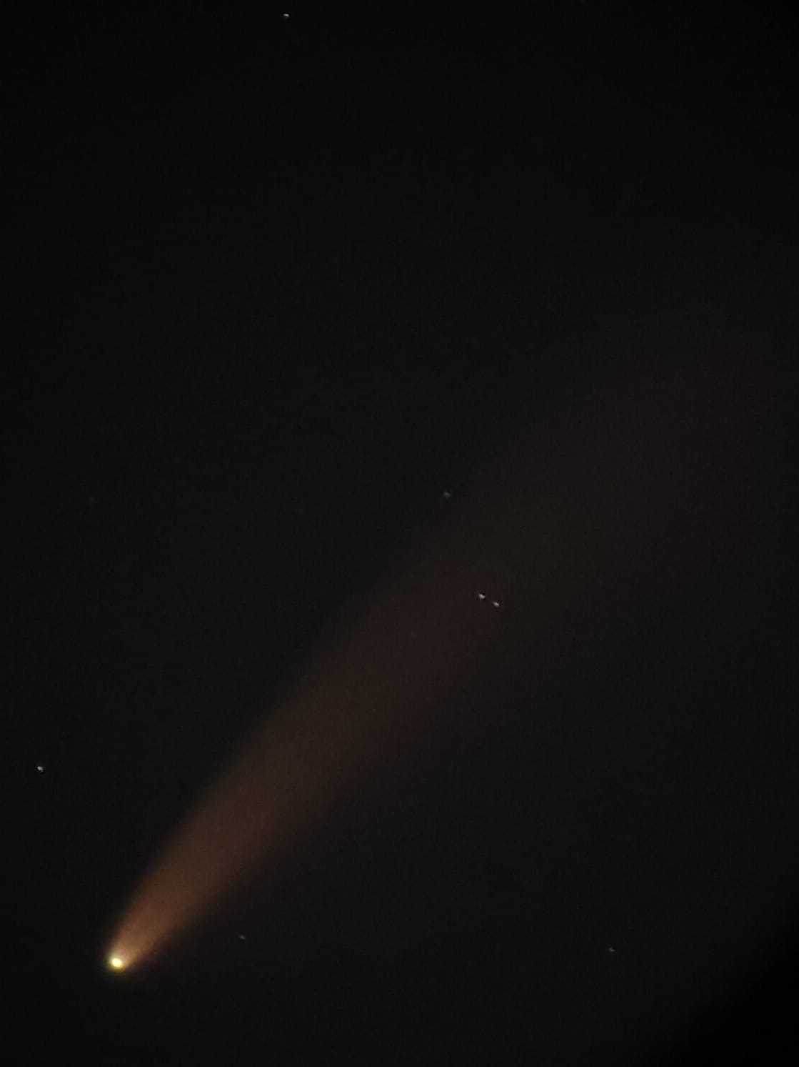 A través de prismáticos se observó perfectamente. Su nucleo brillante y una gran cola, que se iba ensanchando a través de su largo.