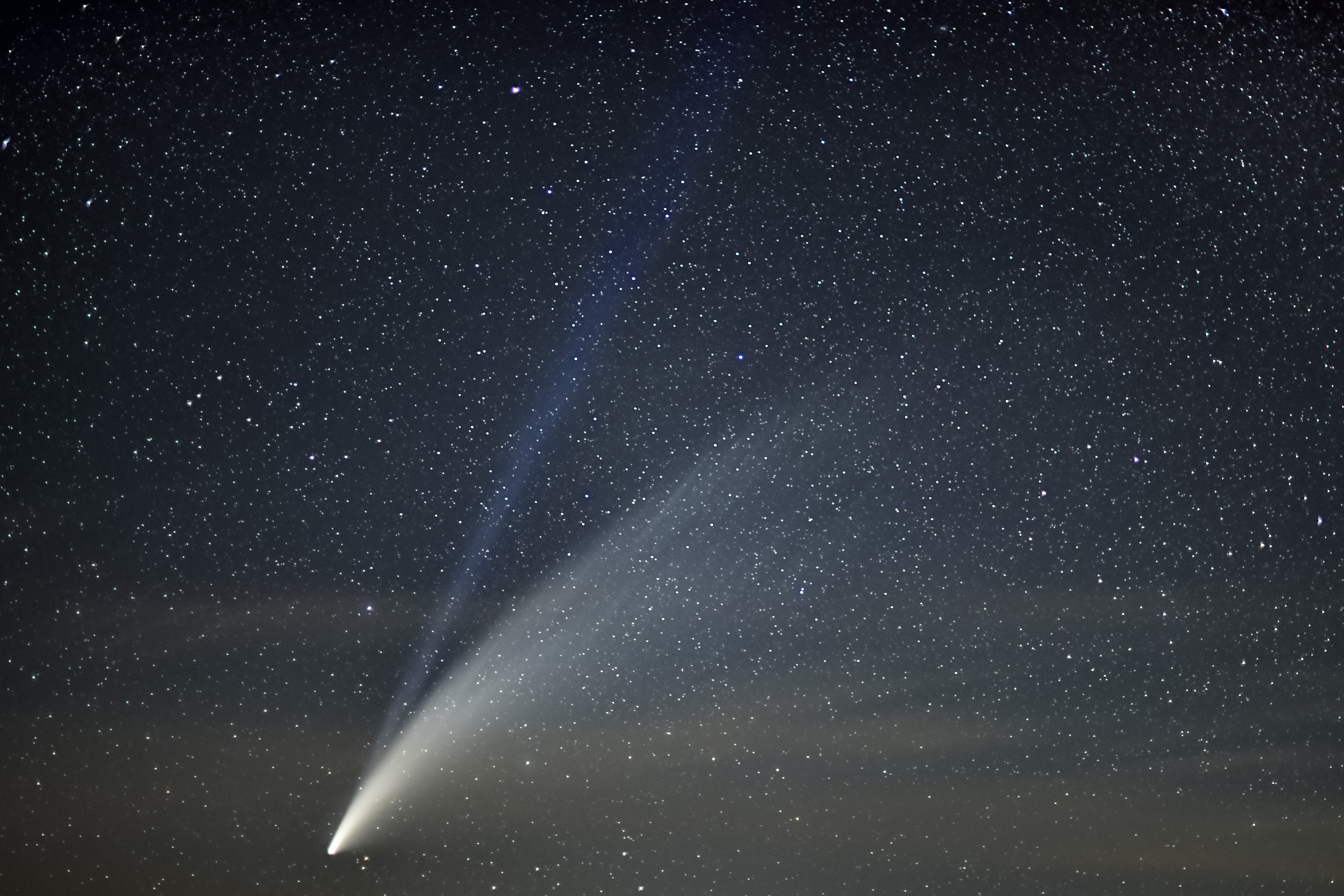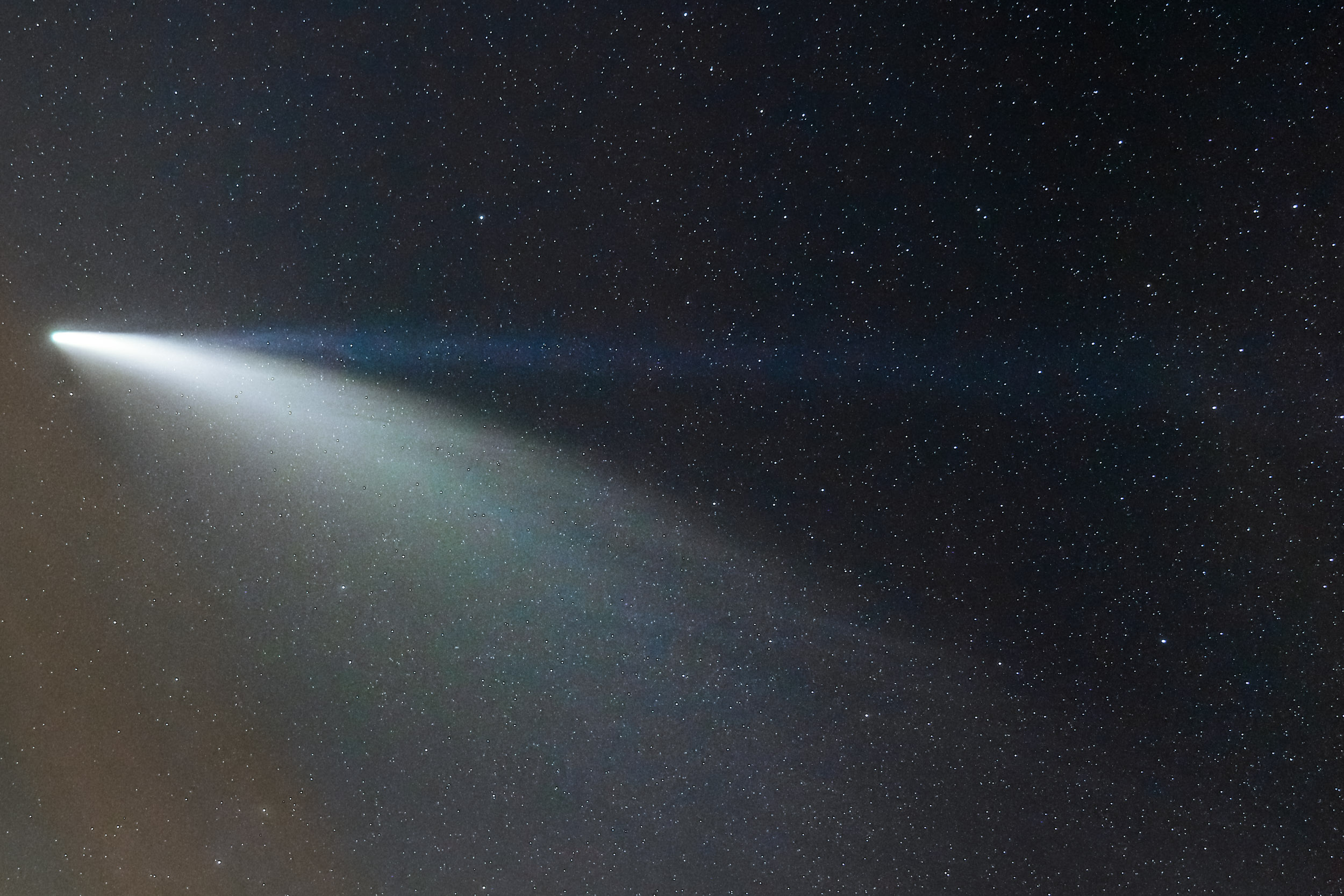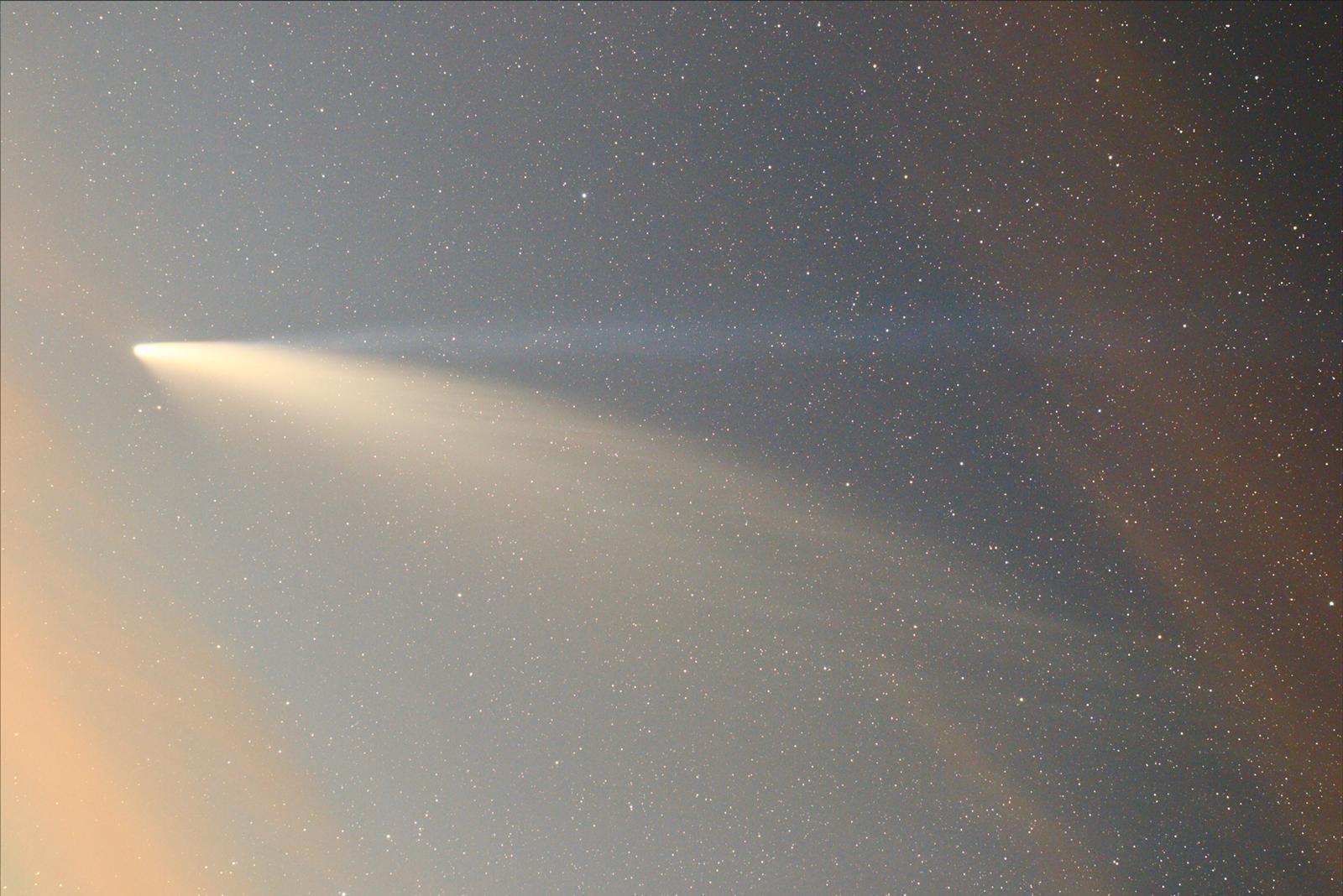 De madrugada volví a salir a fotografiar el cometa, pero hacía más viento aun y lo peor... estaba muy bajo y con la luz del crepúsculo. Definitivamente ya no merece la pena salir de madrugada para verlo.