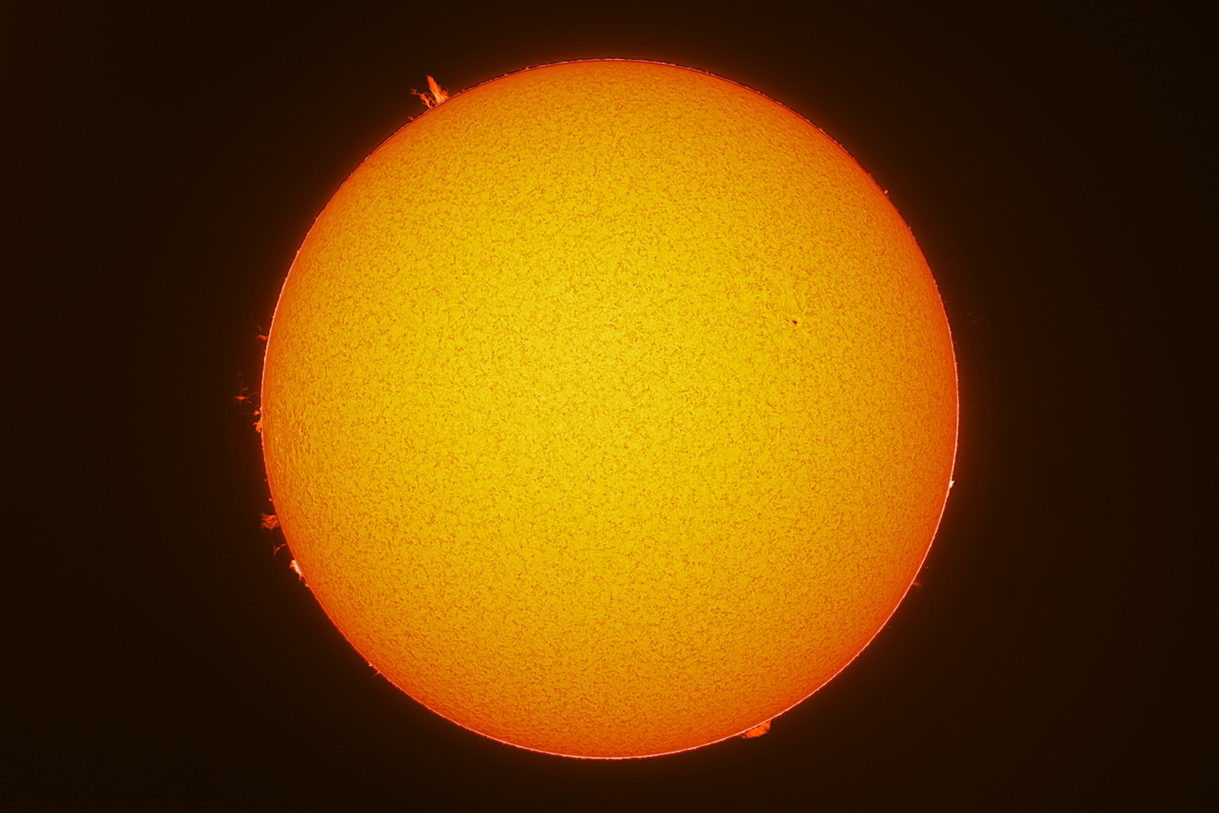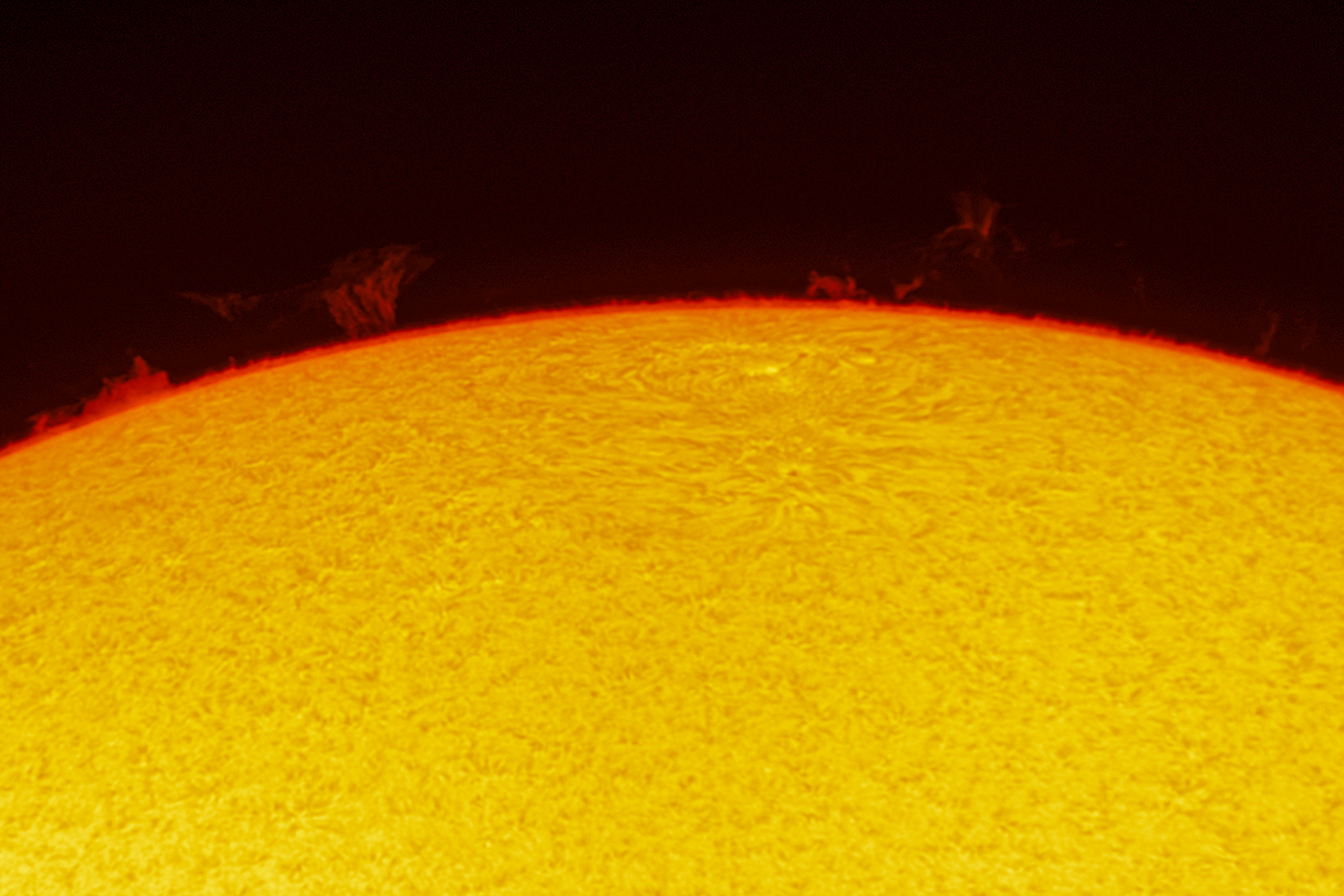 | Imagen del disco solar en H-Alpha con los detalles del disco y las protuberancias | Zona de protuberancias |
