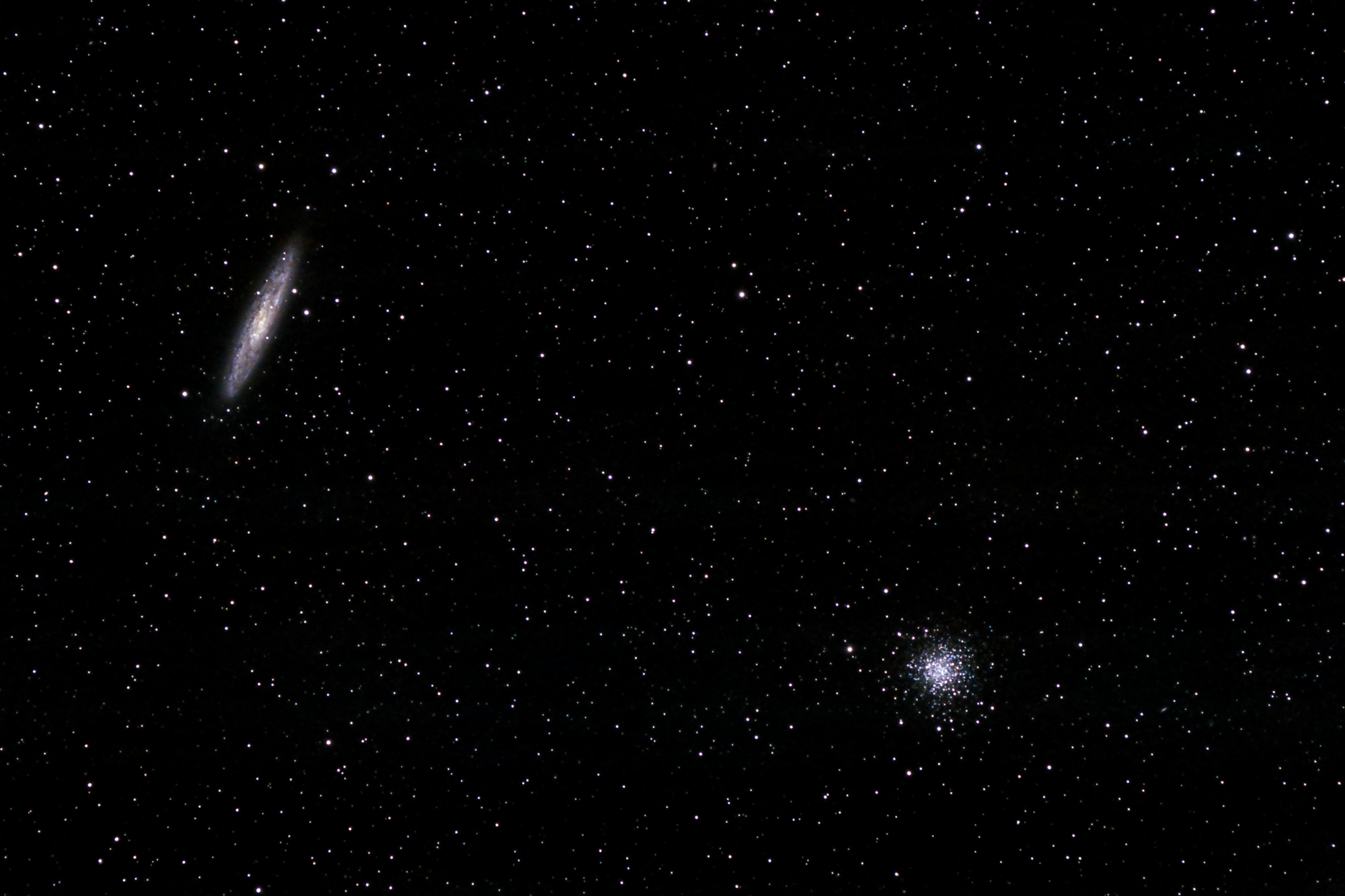 M13, M92 y otros globulares , tampoco podían faltar, y también observamos las galaxias M81, M82, M31, M32, M101, M33 y después fuimos a por algunas estrellas dobles, como Albireo, Mirfak, Mizar. También apuntamos a algunos objetos más caprichosos, como NGC 404 y alguna otra pequeña galaxia. Recorrido después por varios cúmulos abiertos como el doble de Perseo, el asterismo de ET y aslguna cosilla más.