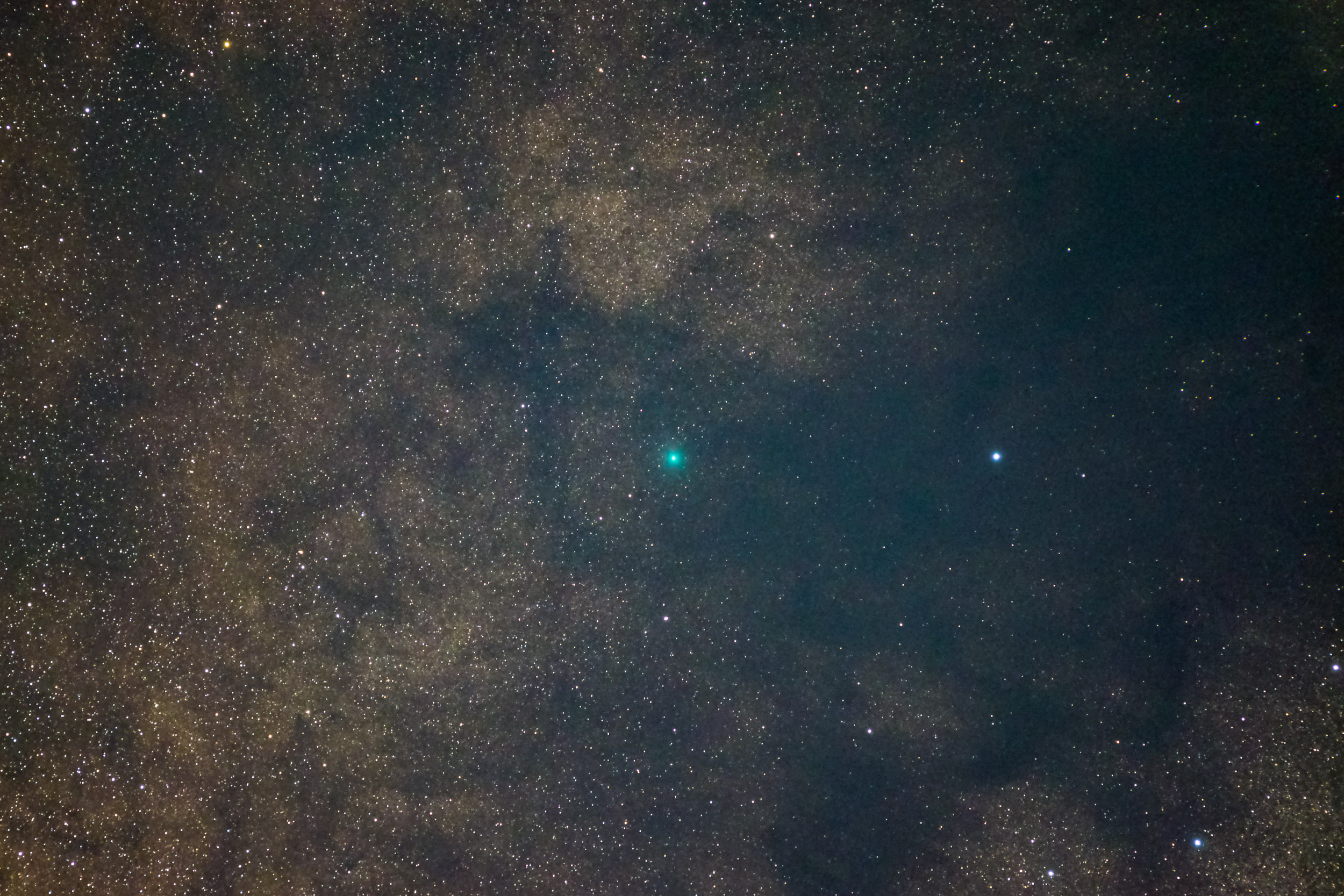 Una foto del cometa 88P/Howell inmerso en la Vía Láctea. Se nota que es mas pequeño que el C/2020 M3 |