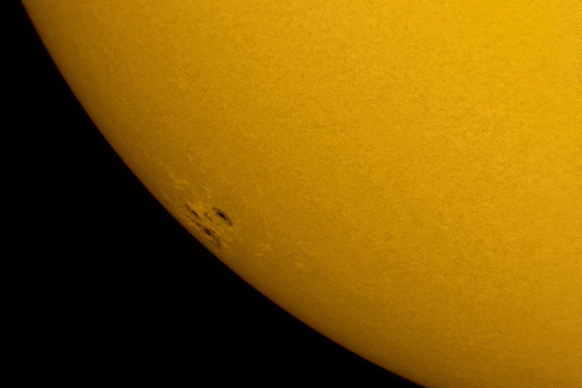 El relato: Ayer vimos aparecer una mancha solar por el borde sur este del disco solar. Tenía buena pinta, pero por culpa de las nubes no pudimos salir a observarla. Hoy las previsiones también eran malas, pero viendo el Sat24h tenía esperanzas de que pasara el frente de cirros y se disiparan las nubes. Y así fue. Sobre las 14:00h vi que habían algunos claros y aproveché a montar en el balcón de casa. Al principio era huecos muy contados, pero pude aprovecharlos para enfocar y poco después los claros eran más grandes y se pudo ver el Sol medianamente bien en huecos de varios minutos, suficientes para grabar unos vídeos con la CCD y el ED80 e incluso para echar un vistazo por el ocular de 12mm. Hoy se ve el grupo de manchas solares algo mas alejado del borde, y se distinguen perfectamente 3 manchas solares con su zona de umbra y penumbra y una fácula asociada a las manchas solares. La calidad de las imágenes no son buenas, por la turbulencia, ya que estaba observando desde dentro de casa con la ventana abierta. Se veía bastante mejor con el ocular. De todas formas, las imágenes al menos nos sirven para dejar constancia de la actividad solar.