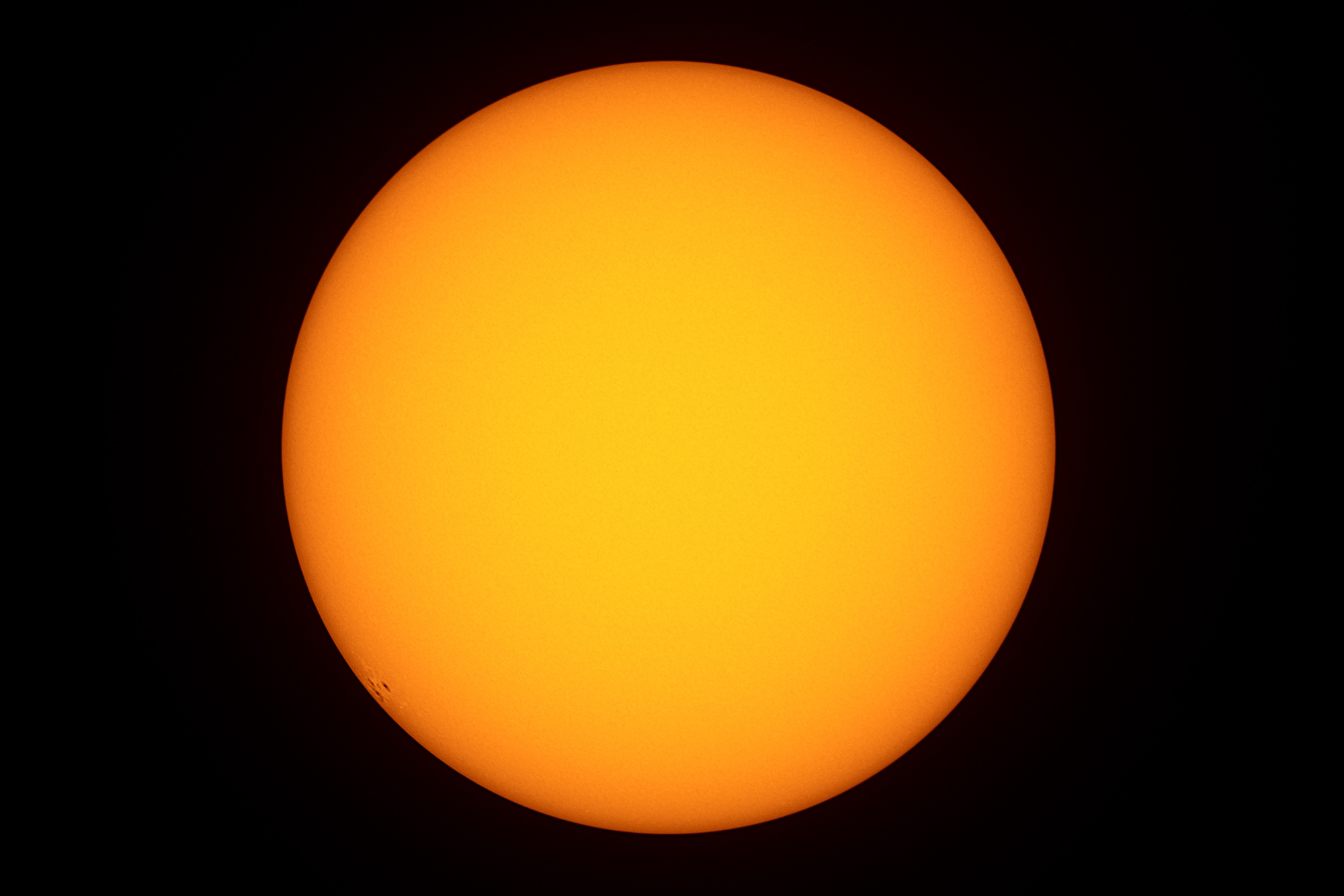 Disco completo en luz blanca con el ED80 donde se ve la RA 2781 como unica zona activa del Sol |