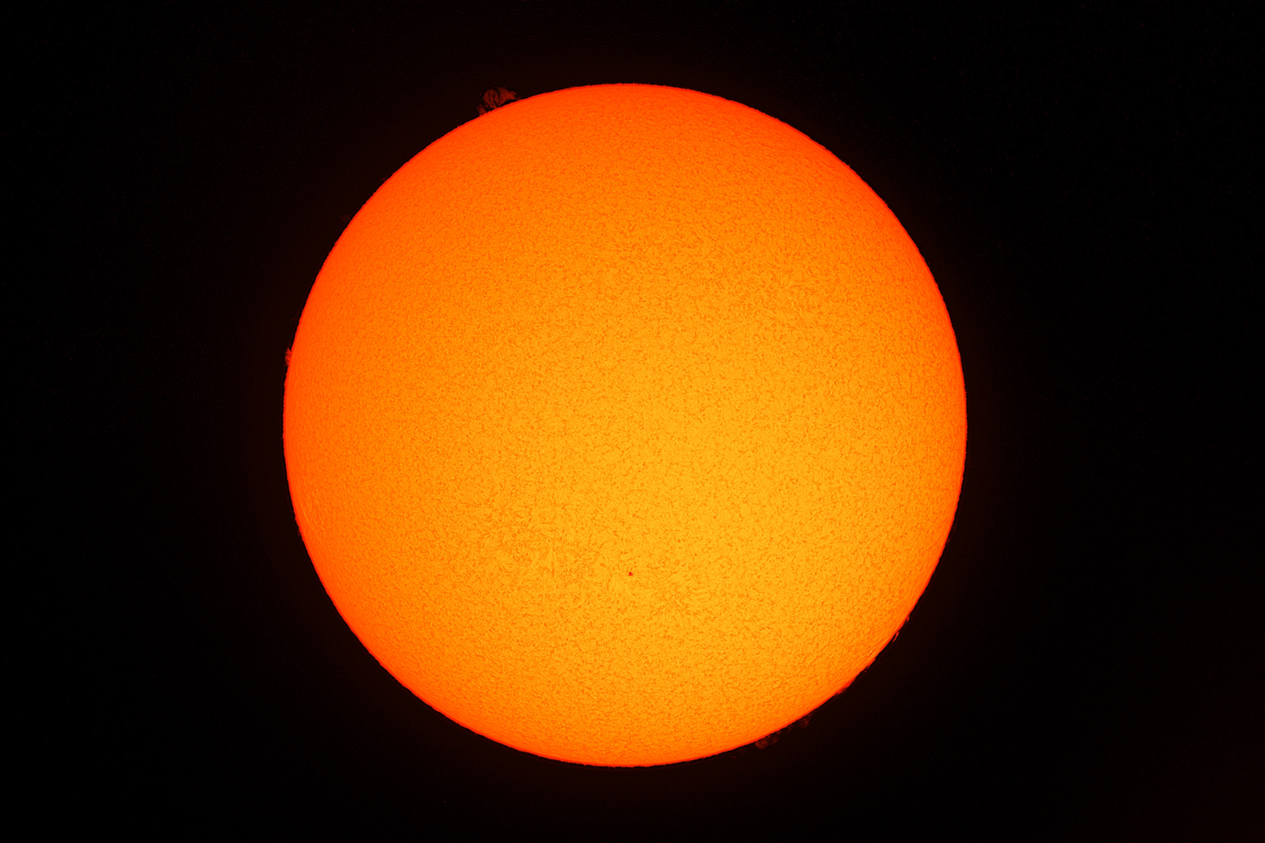 Imagen del disco solar completo con el telescopio ED80 y una diagonal Lunt de Calcio. |