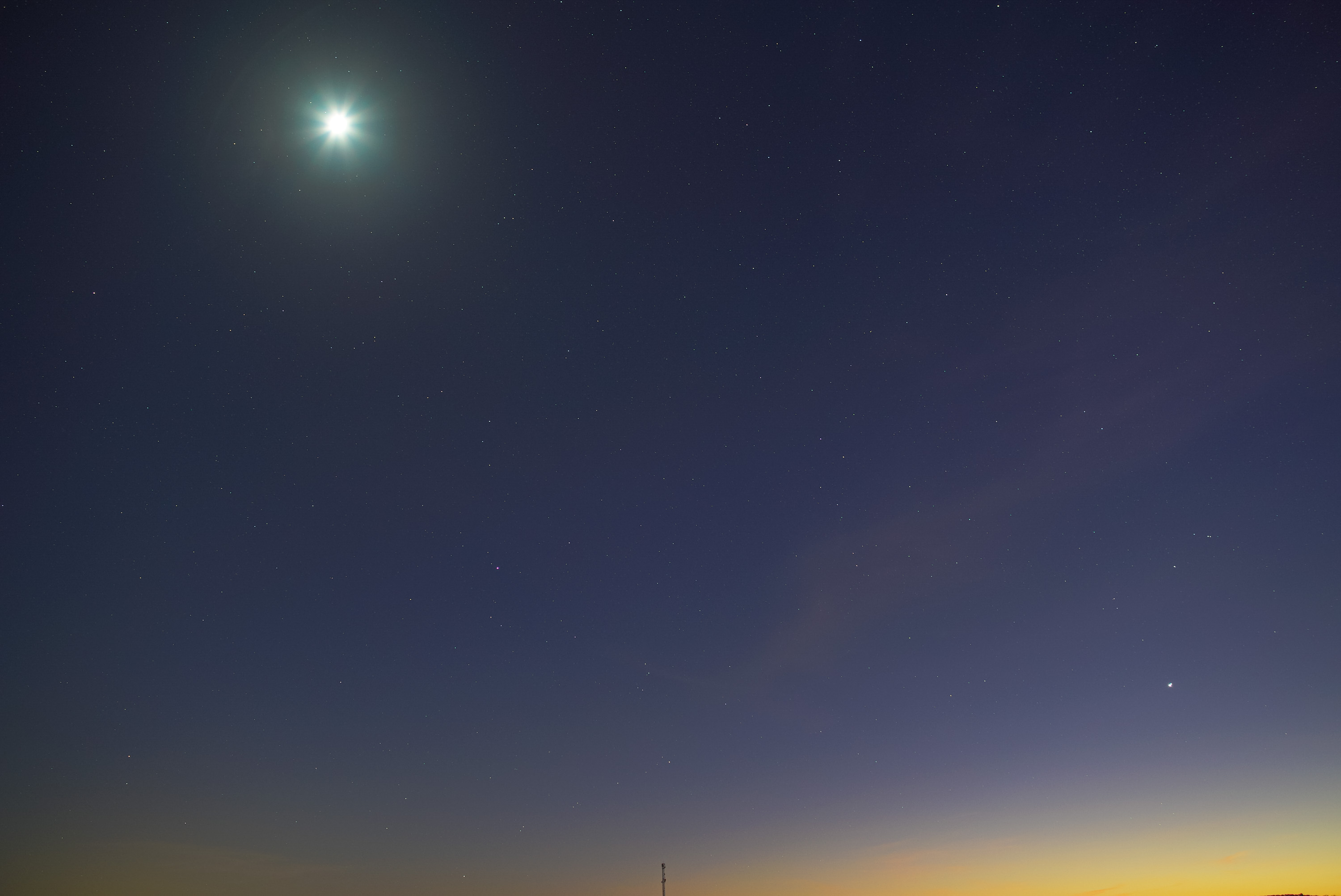 Conjunción con una Sony A7s y un objetivo de 24mm. En la parte superior izquierda se ve la Luna. |