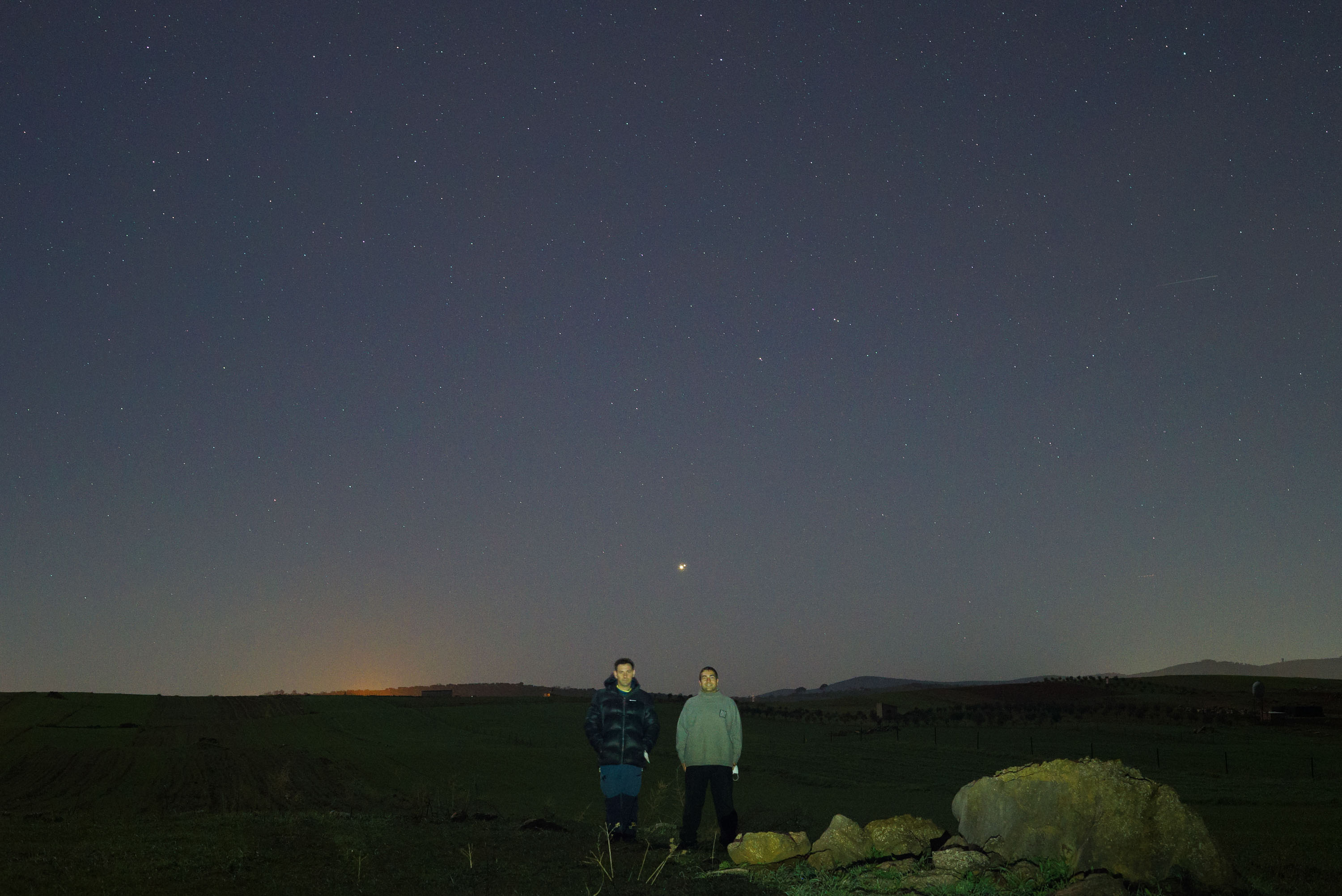 Juan Carlos y Óscar junto a la conjunción de Júpiter y Saturno. La foto está sacada con una Sony A7s y un objetivo de 50mm |