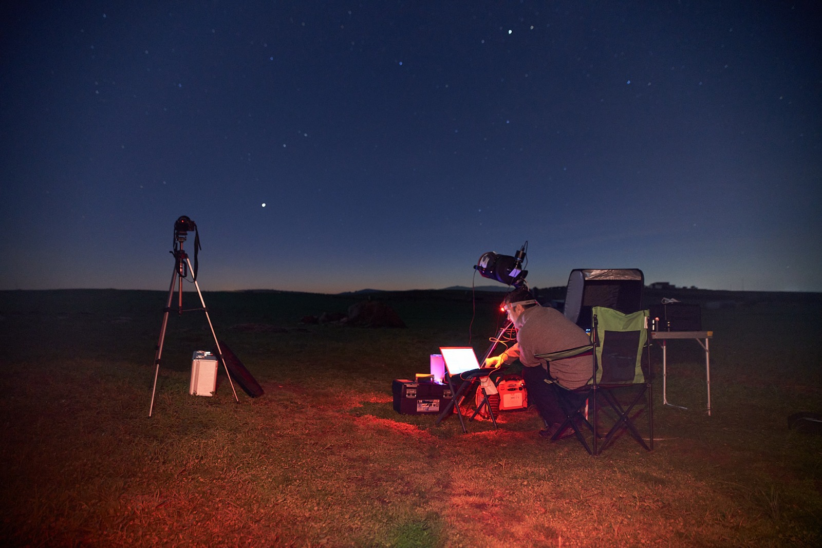 Oscar realizando unos vídeos de la conjunción con el telescopio. Foto cortesía de Juan Carlos Martín |
