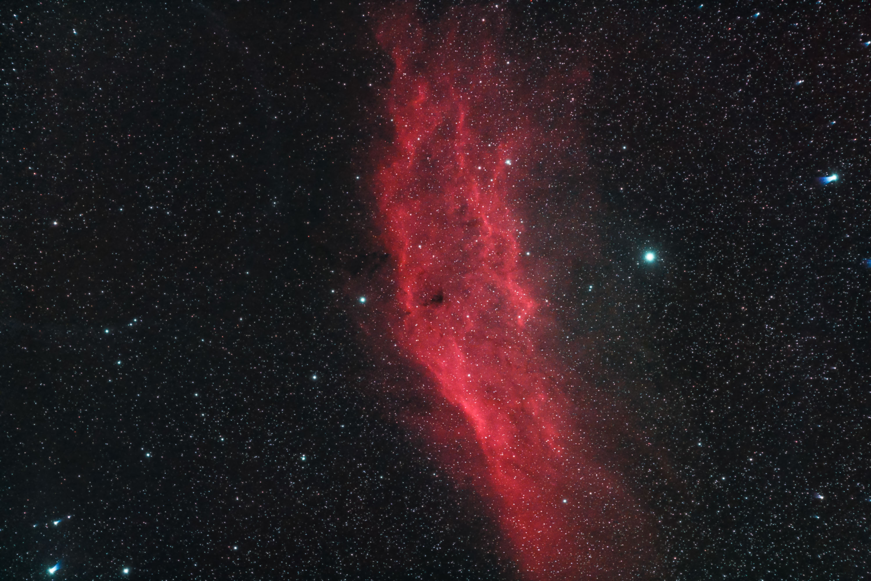 Nebulosa NGC 1499. Fotografiada con el ED80 + reductor 0.85x y la Sony A7s con filtro L-Enchance. 11x300s a ISO 12800 + 18 darks + 20 flats. Procesado PixInsight + Lightroom |