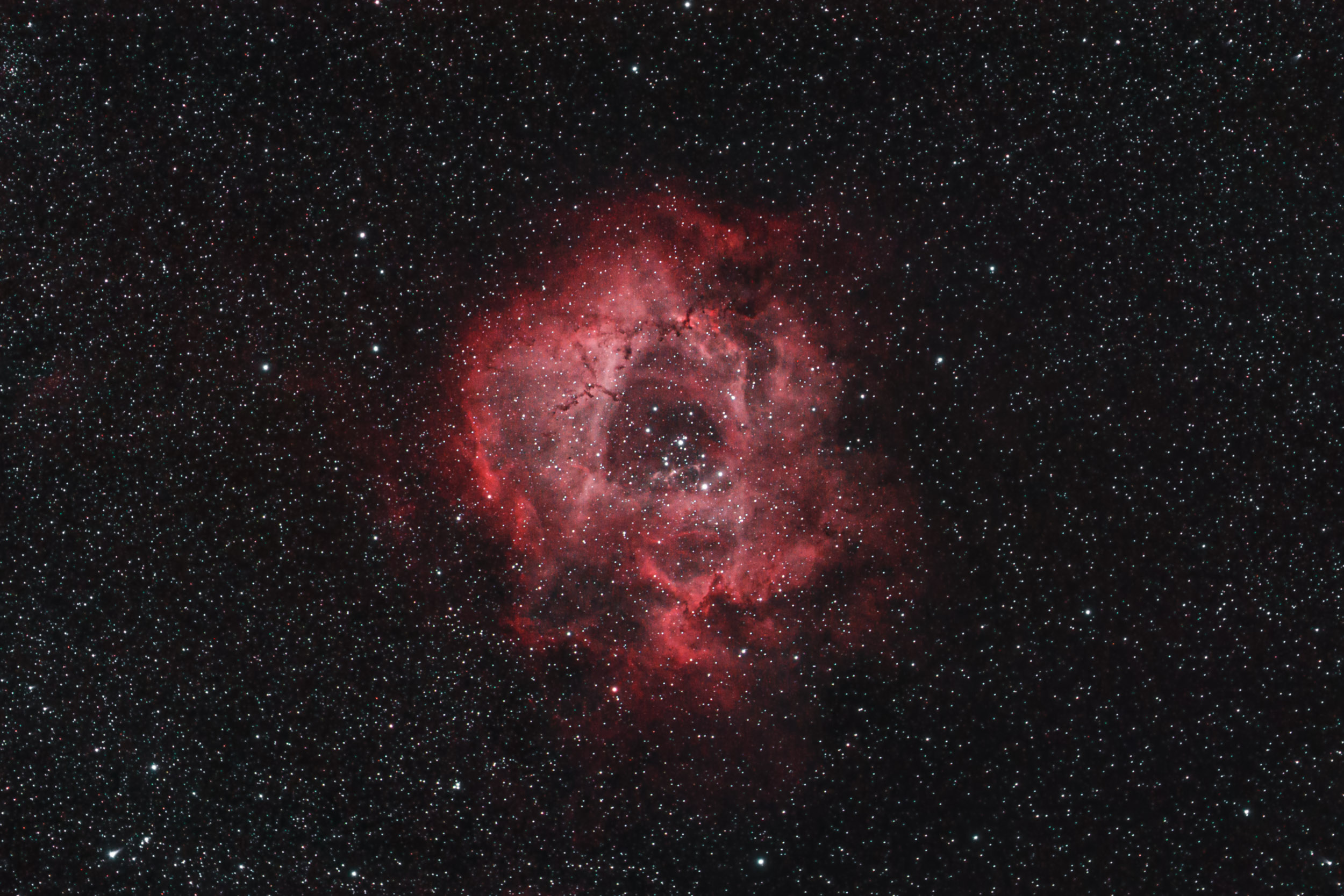 A las 21:30 Juan Carlos se marchó, como estaba previsto, y yo me quedé sacando fotos a la nebulosa NGC1499, pese a que la Luna estaba iluminada un 48% y estaba a más de 40º de altura en el cielo. Entonces ¿porqué me puse a fotografiarla? La razón es que hace unos días me compré el filtro L-Enchance que se supone que filtra la contaminación lumínica, e incluso algo de luz lunar. Y como hasta ahora no había podido probarlo en Salamanca por culpa de las nubes, esta era mi ocasión. Tengo que decir que en un principio tiré unas fotos a M42, pero estaba muy bajo, y el fondo quedaba demasiado brillante, así que decidí tirar a NGC1499, que estaba más alta. Al revisar las fotos en la cámara, no me convencieron ,porque apenas se veía señal de la nebulosa, y eso que estaba tirando fotos de 300s a ISO 6400. Pero tengo que reconocer, que una vez en cada, cuando me puse a procesar las fotos, saqué mucha más señal de la que me esperaba. De hecho, es la mejor foto que he sacado de esta nebulosa hasta la fecha. Parece que el filtro funciona bien. Después tiré a la nebulosa de la Roseta, pero los resultados no quedaron tan bien, quizás es porque tiré con un ISO más alto. Después proseguí con M42 y por último me use a sacar los darks y flats.