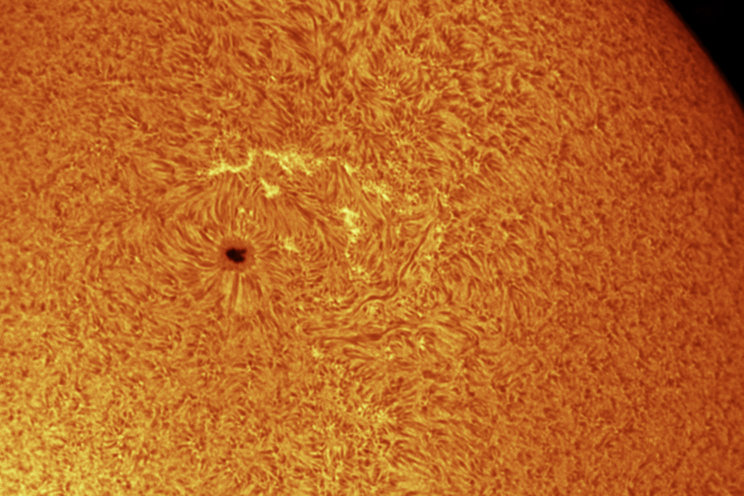 Hoy 25de Diciembre, hemos aprovechado a que la mañana está despejada para salir a observar el Sol. Con el fin de evitar mucha turbulencia, hemos quedado pronto. A las 13h quedamos en la calle de los Mozárabes Pablo y yo. Cuando llegó Pablo yo acababa de empezar a montar el equipo, nos saludamos y seguimos montando. Pablo montó su refractor 152/900 con el prisma Herchel, y yo el Lunt 60. Aunque había alguna nube, estaban todas cerca del horizonte y aparentemente lejos. Aunque seguramente nos terminaran por alcanzar, parecía que nos iban a permitir ver el Sol sin problema. Y así fue.