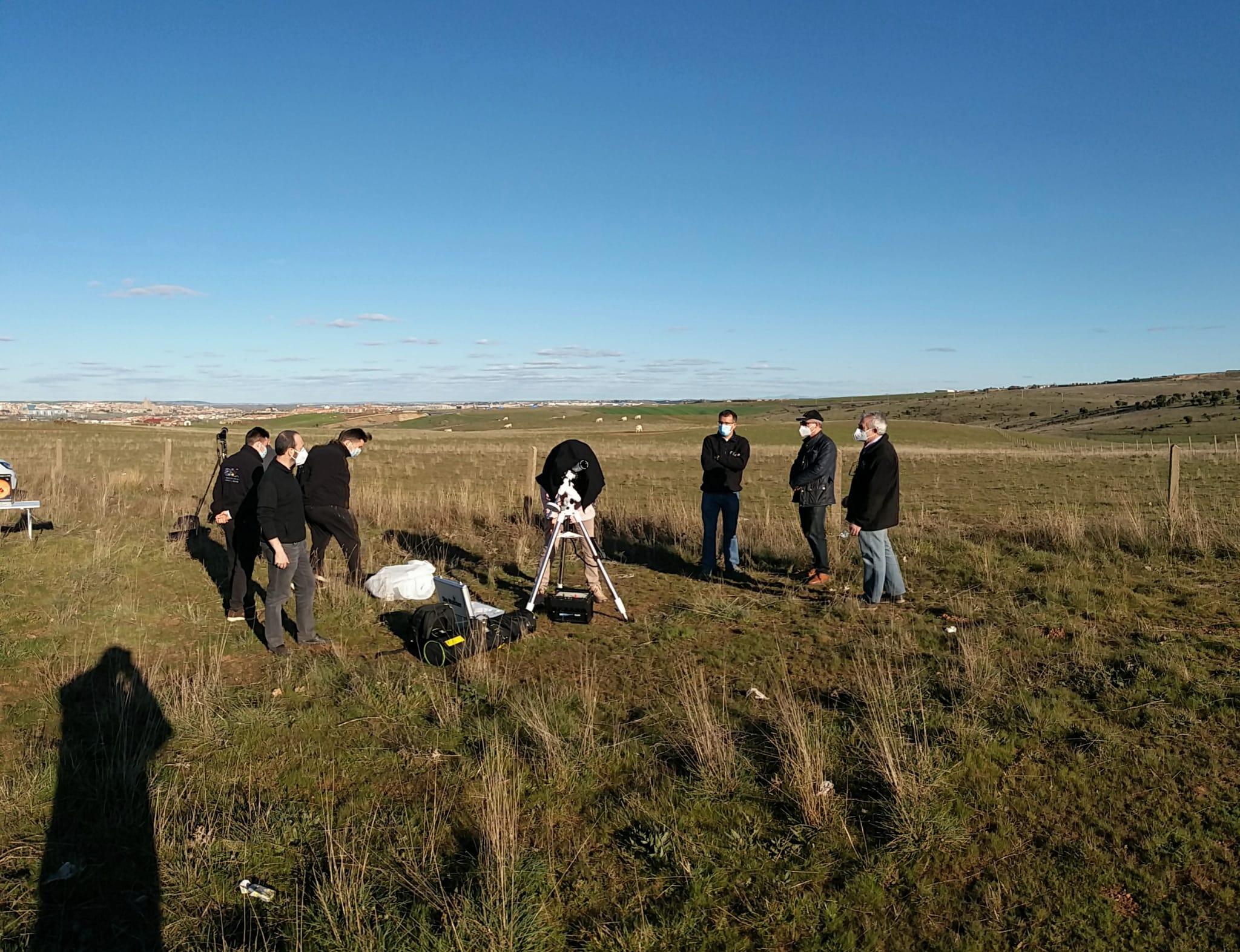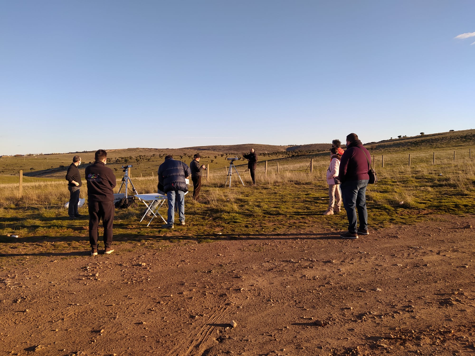 Aprovechamos también a observar la nebulosa M42 por algún telescopio antes de recoger, ya que a las 22h había que estar cada uno en su casa, por el toque de queda.