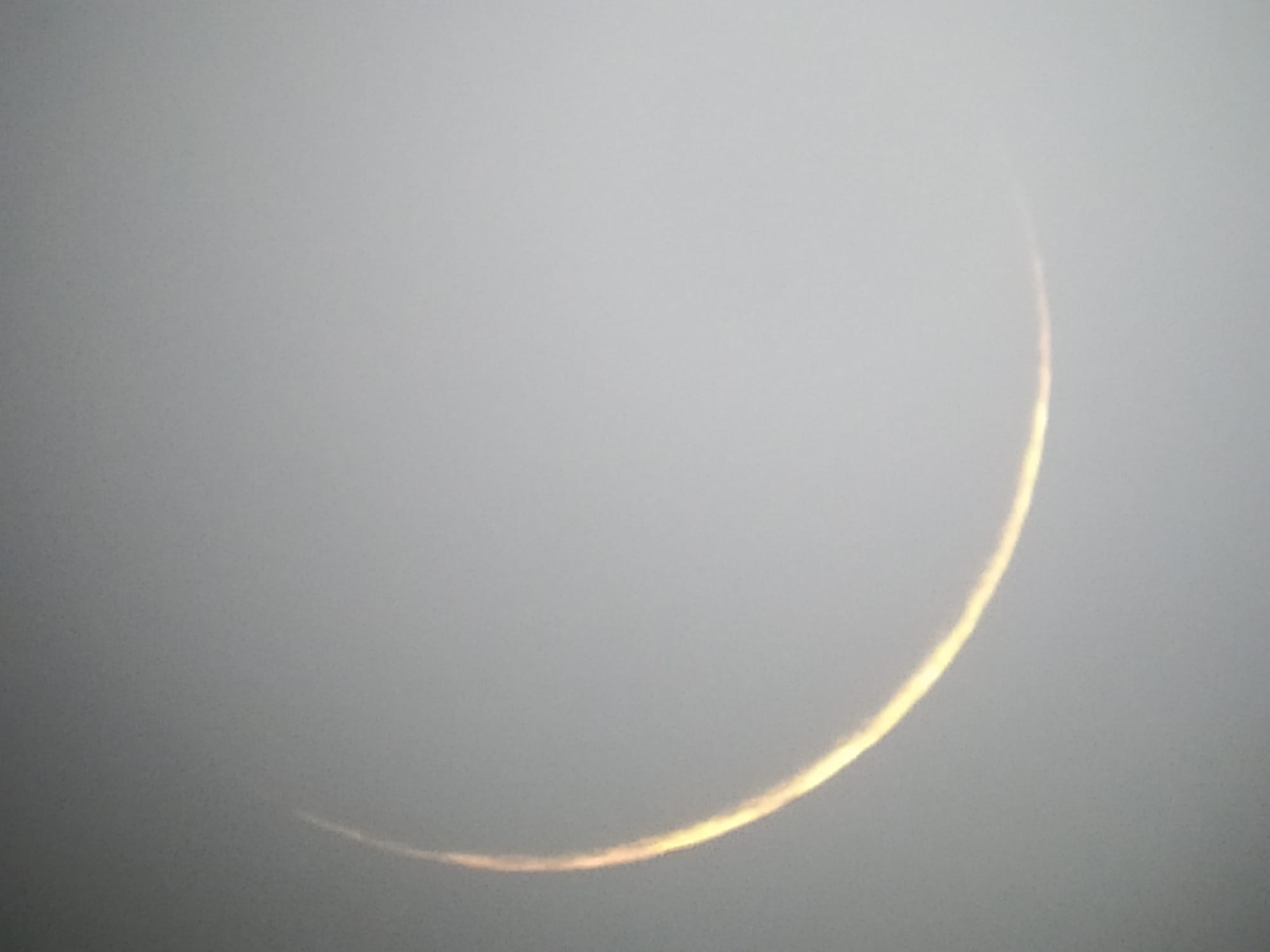 Cuando ya pensábamos que no localizaríamos la luna, a las 19:44 recibí una llamada de Óscar diciéndome que se veía a simple vista, cuando la localizamos (la buscábamos mas cerca del sol) oriente el telescopio para poder observarla, pudimos ver una finísima parte de la luna iluminada.