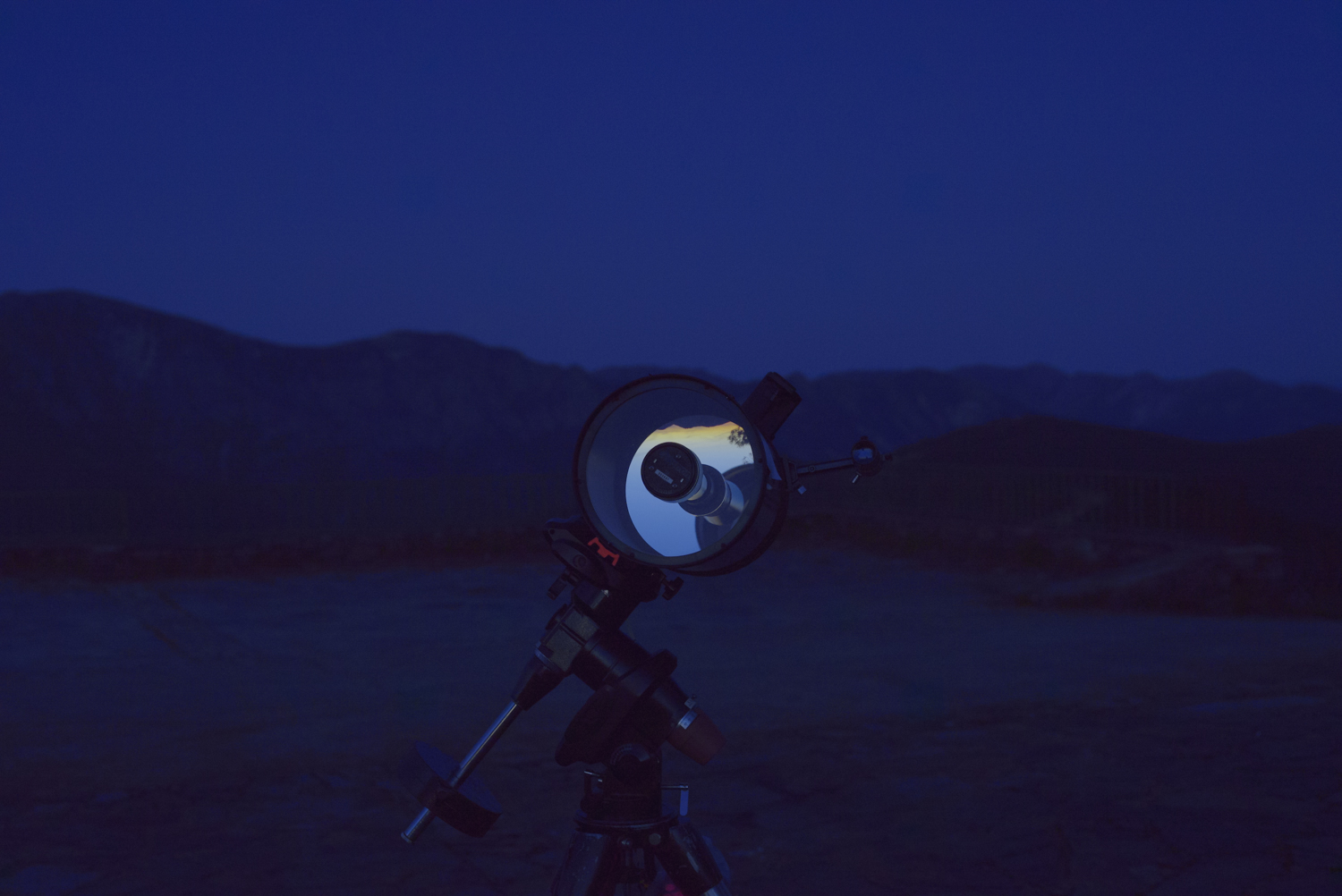 Reflejos del atardecer en el espejo del telescopio |