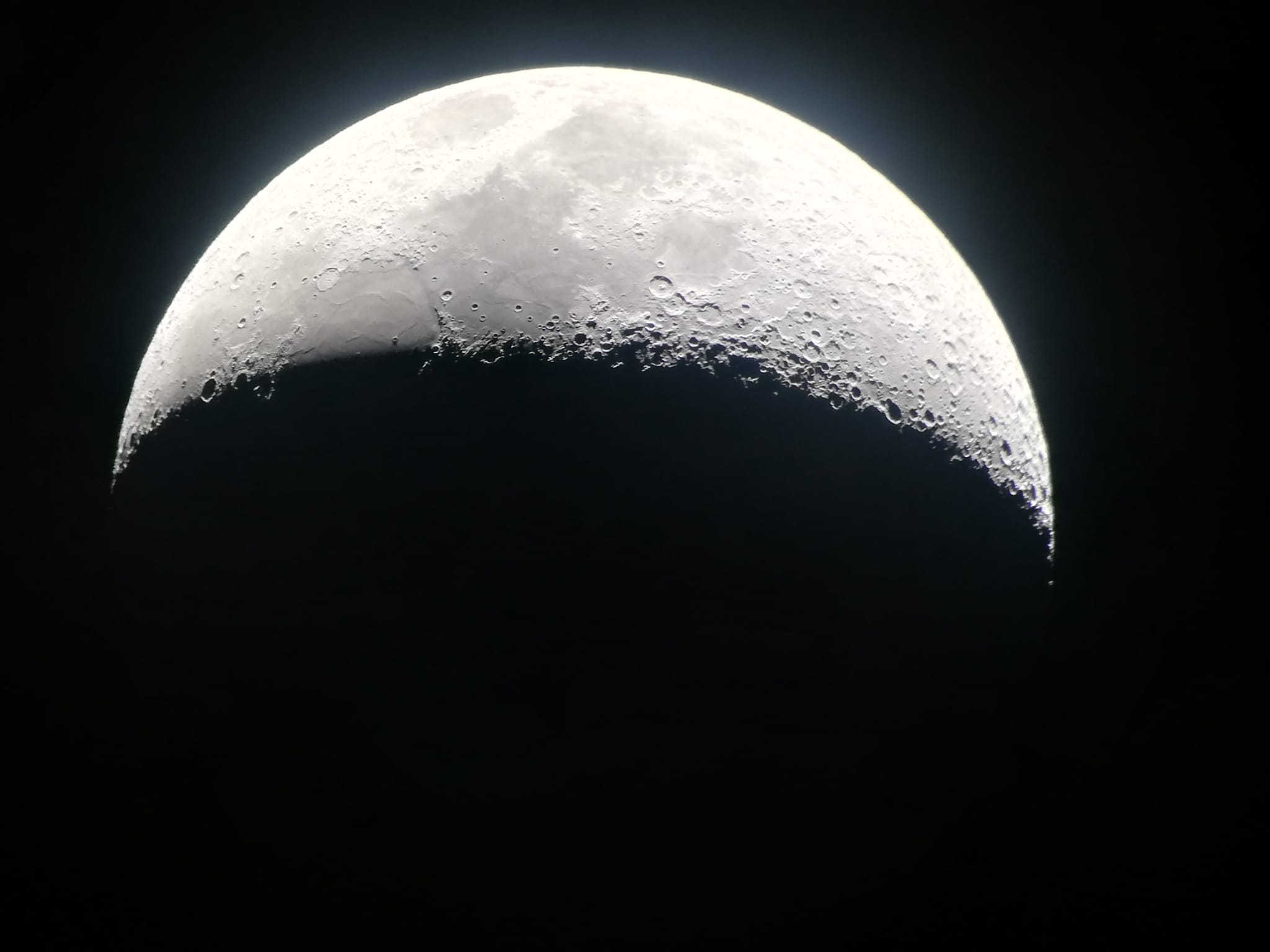 El relato de Charo: Preciosa y solitaria ( solo hemos estado Óscar y yo) noche de observación. La luna , paso alguna foto que Óscar ha hecho con mi móvil a través del telescopio, Mercurio, Marte, la estación espacial china, la ISS dos veces y una ,aunque muy difícil, a través del telescopio , por supuesto, con la ayuda de Óscar y ya para rematar los starlinks, ese enorme tren de luces mágicas y “sospechosas”
