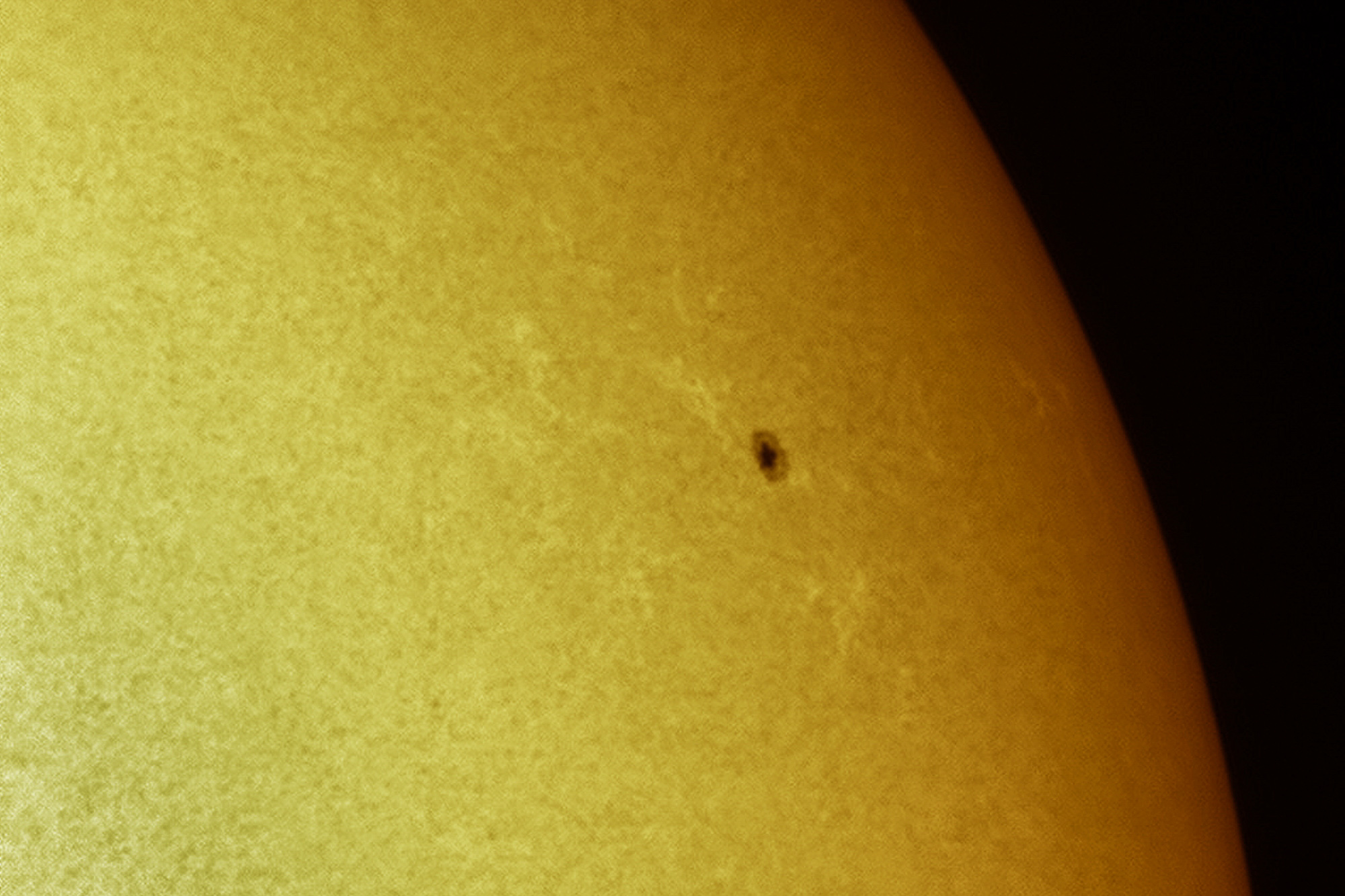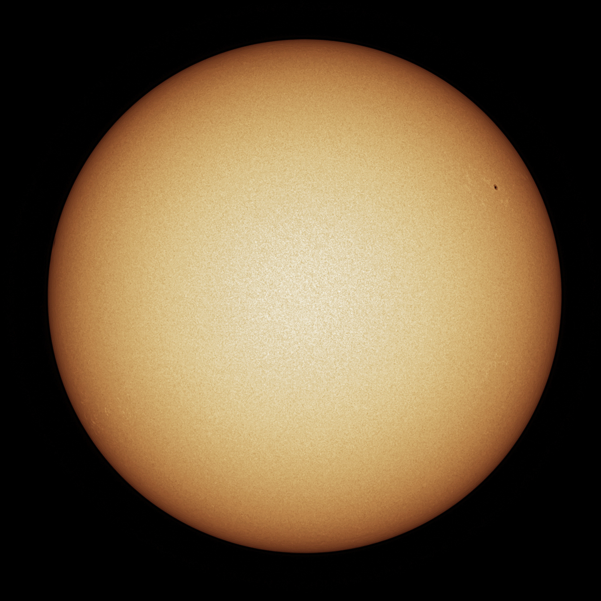Disco solar completo en luz blanca, donde se aprecia la mancha solar AR2822 y al lado opuesto y muy cerca del borde la nueva AR 2824 |