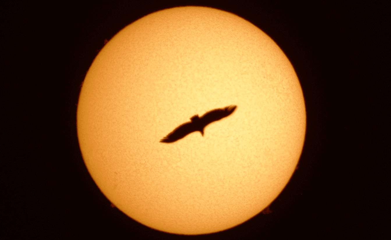 Un visitante volador que se cruzó delante del Sol y nos dejó esta bonita instantánea. |