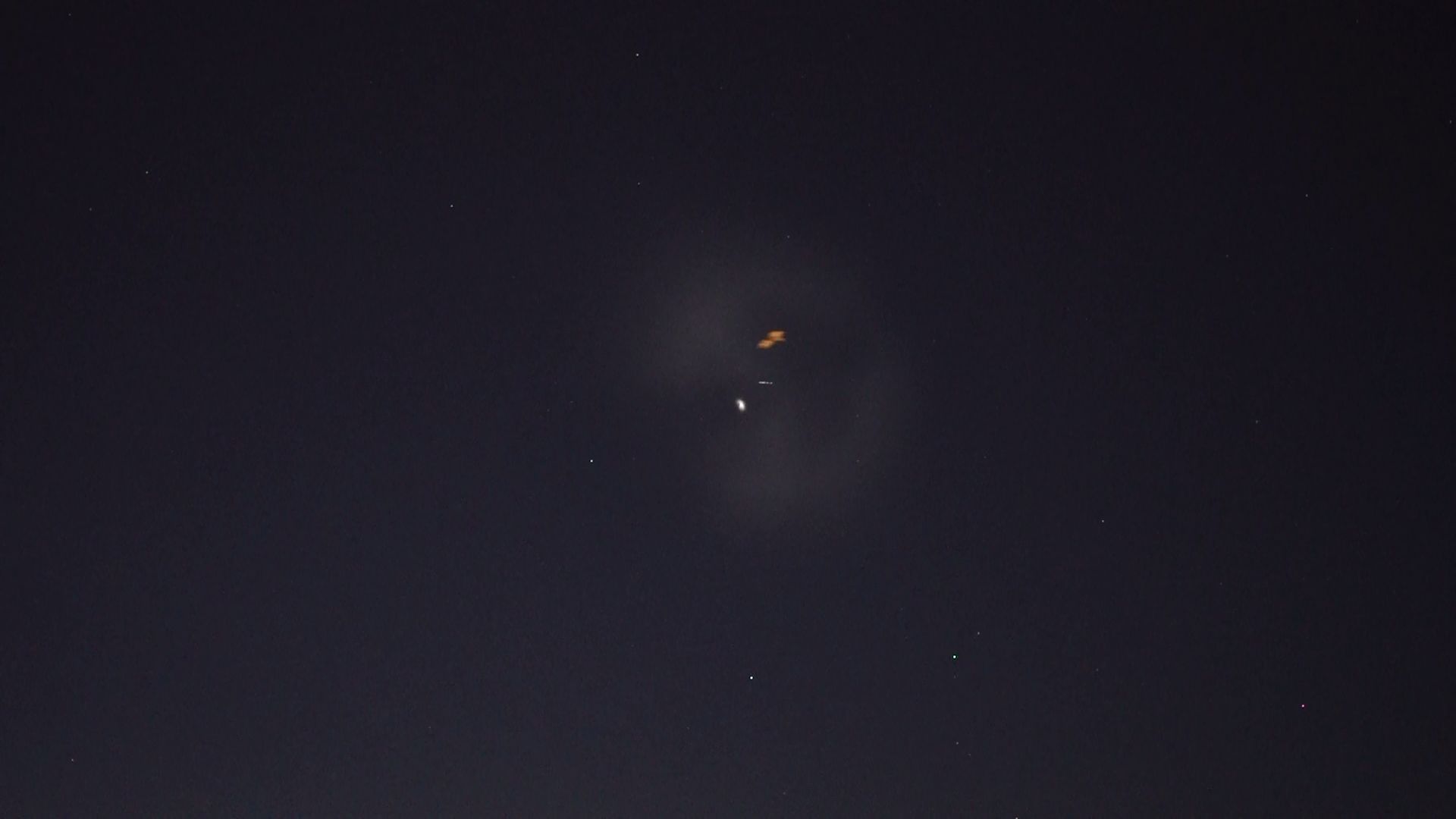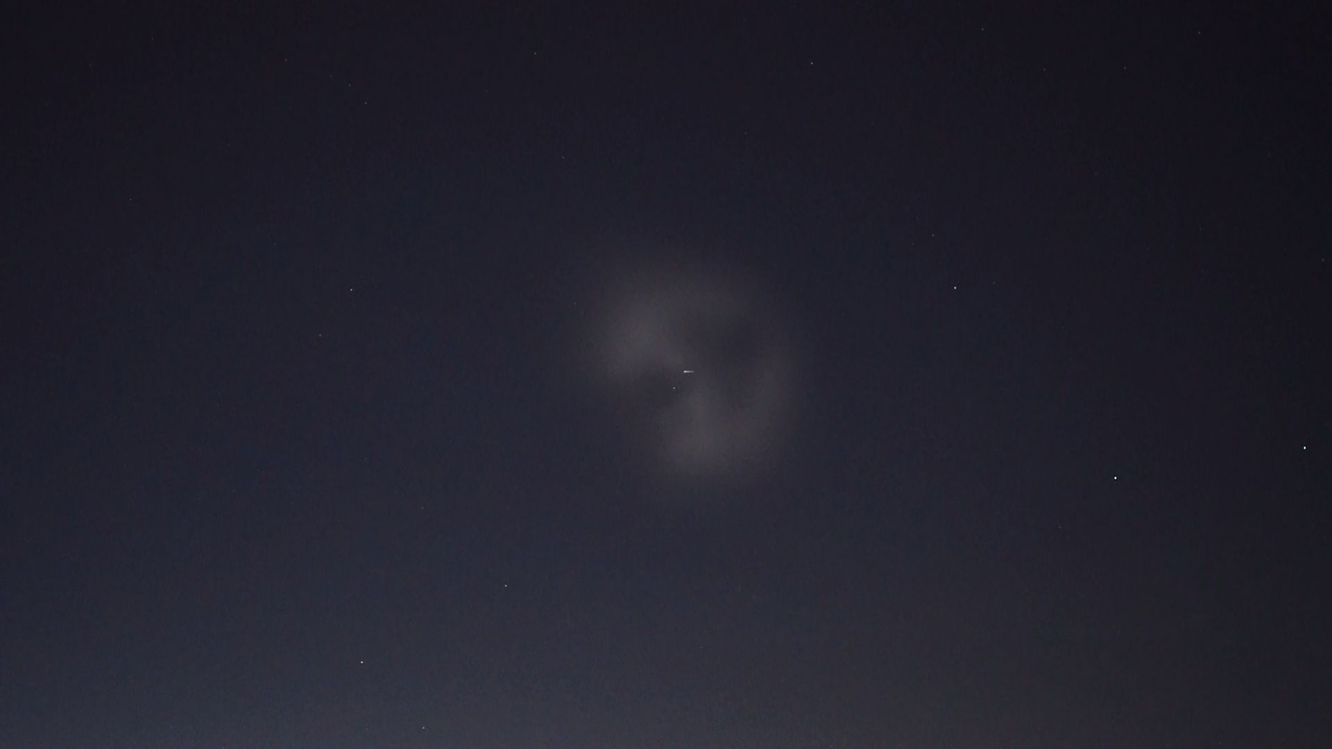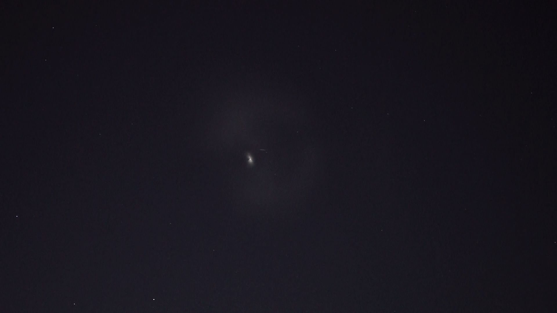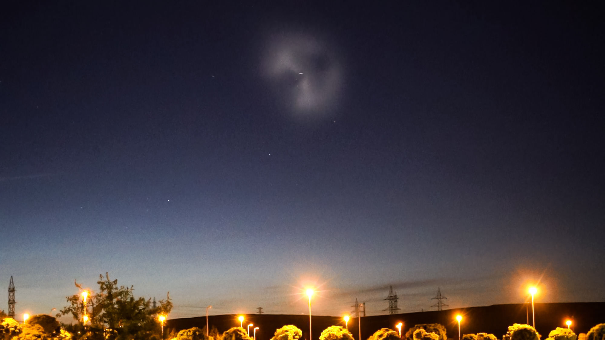 El relato: Esta noche hemos tenido una salida improvisada, porque había Luna llena y no se podía hacer mucho. De todas formas, había ganas de salir y decidimos sacar el telescopio nuevo de Pablo para hacer un mosaico de la Luna.Asi que sobre las 21:20 llegó y comenzó a montar, al poco rato llegué yo y poco después fueron llegando el resto. Estuvimos sacando unos vídeos con la CCD para hacer un mosaico de la Luna, pero por desgracia, al apilar las fotos en casa, vimos que no se alinearon bien algunas y nos quedó un trocito para hacer el mosaico completo. Mientras estábamos observando la Luna, Germán nos comento que sobre las 22:55 iban a pasar los satélites Starlink L28. No teníamos en mente verlos pasar, porque alguno de nosotros, ni si quiera sabíamos que los habían lanzado ya, y es que, precisamente los habían lanzado poco antes de empezar a montar los equipos,concretamente a las 20:59. El pase estaba previsto para las 22:52, menos de 2 horas después del lanzamiento. Por si acaso, y por precaución, me puse la alarma un par de minutos antes, puesto que ya me había pasado en otra ocasión que se adelantó el pase, sobre todo cuando los han lanzado recientemente. En esta ocasión tan solo habían pasado 1 hora y 50 minutos desde el lanzamiento. A las 22:50 sonó la alarma del teléfono y me dirigí hacia una zona donde se vieran pasar, cruzando la carretera, para evitar los árboles y las farolas. Antes incluso de cruzar la calle y encender la cámara mi sorpresa fue mayúscula cuando veo una nube brillante de forma redondeada y grito... Ahí están!!! son esos!!!! miraaa!!! Rápidamente encendía la cámara y llamé al resto de la gente para que se acercara a verlo. Era todo un espectáculo. Era la primera vez que veíamos la nube de gas del cohete Falcon. Siempre estamos acostumbrados a ver la fila de luces de los Starlink, y aunque habíamos visto imágenes de la bola de gas desde EEUU, nunca las habíamos visto desde España. Dentro de la nube de gas, se veían los 60 satélites en fila, como una pequeñísima línea de puntitos brillantes, seguido de otro puntito, que era la etapa del cohete falcon. Pero eso no fue todo. 1 minuto y medio después notamos un aumento repentino en el cohete falcon. Estábamos viendo en directo, el encendido de re-entrada de la etapa superior del cohete Falcon!!!! INCREIBLE! Mientras la nube de gas grande se iba debilitando, la del cohete falcon se hacía mas grande y brillante. Al mismo tiempo que los satélites seguían avanzando en línea. Continuamos otro minuto más observando ese espectáculo, hasta que se hicieron más débiles y los perdimos un par de minutos después.