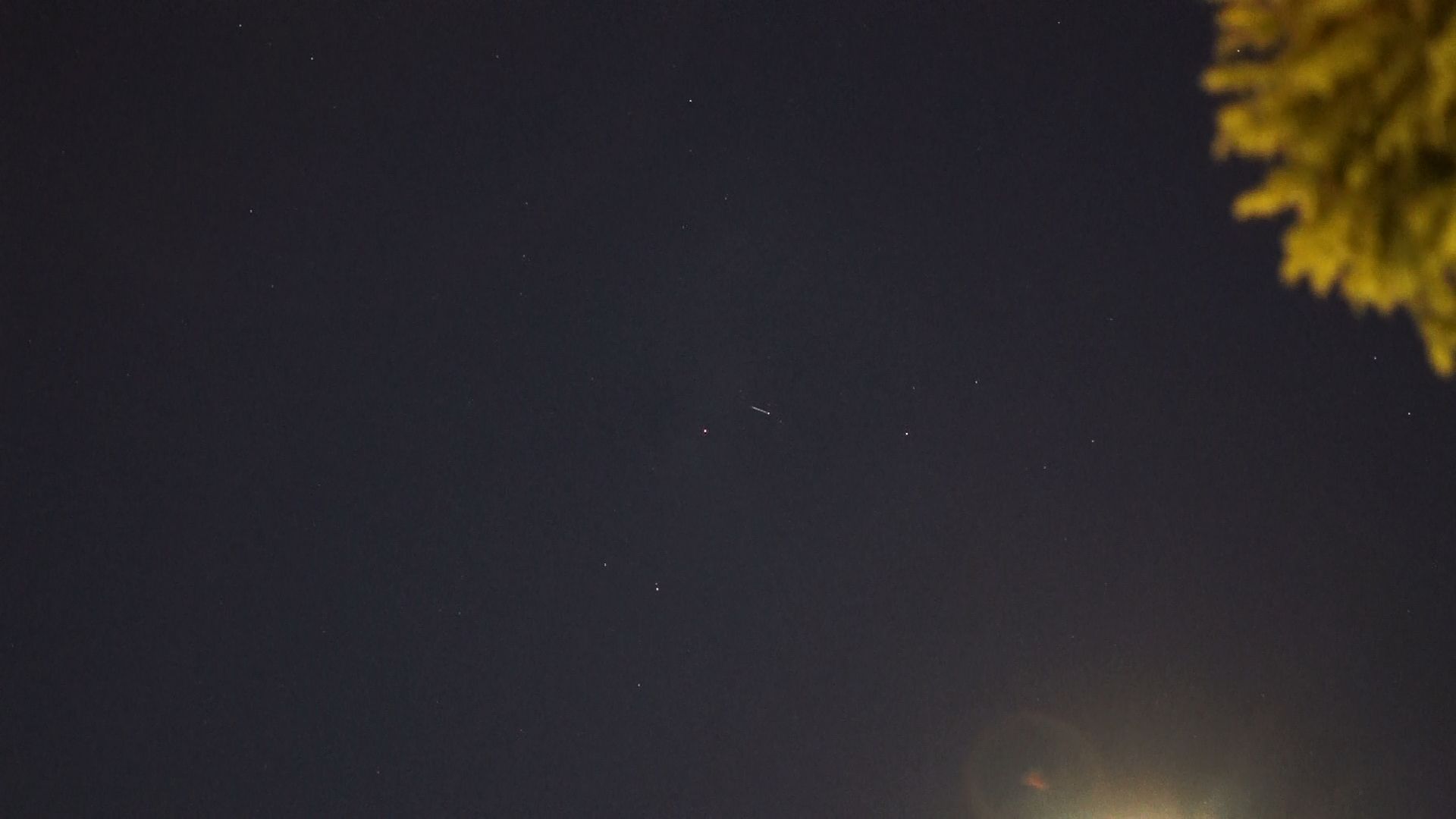 Los satélites Starlink a punto de perderlos al pasar por destrás de un arbol y meterse de lleno en la contaminación lumínica. |