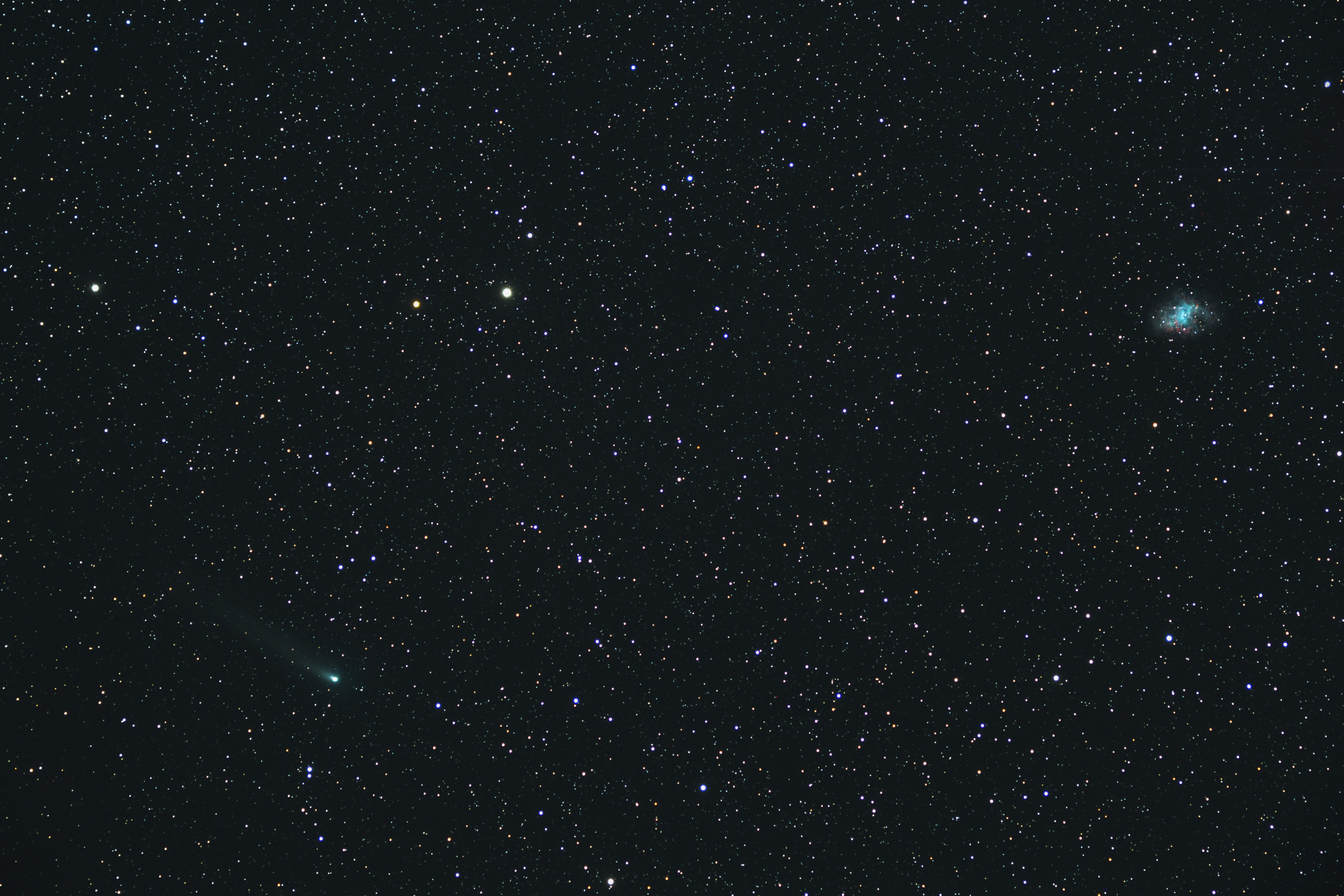 | Cometa 67P/Churyumov- Gerasimenko y a la derecha la nebulosa Messier 1 (Nebulosa de cangrejo) ED80 + reductor de focal + ASI 294MC | Cometa 29P/ con el 150/1200 foto cortesía de Pablo González |