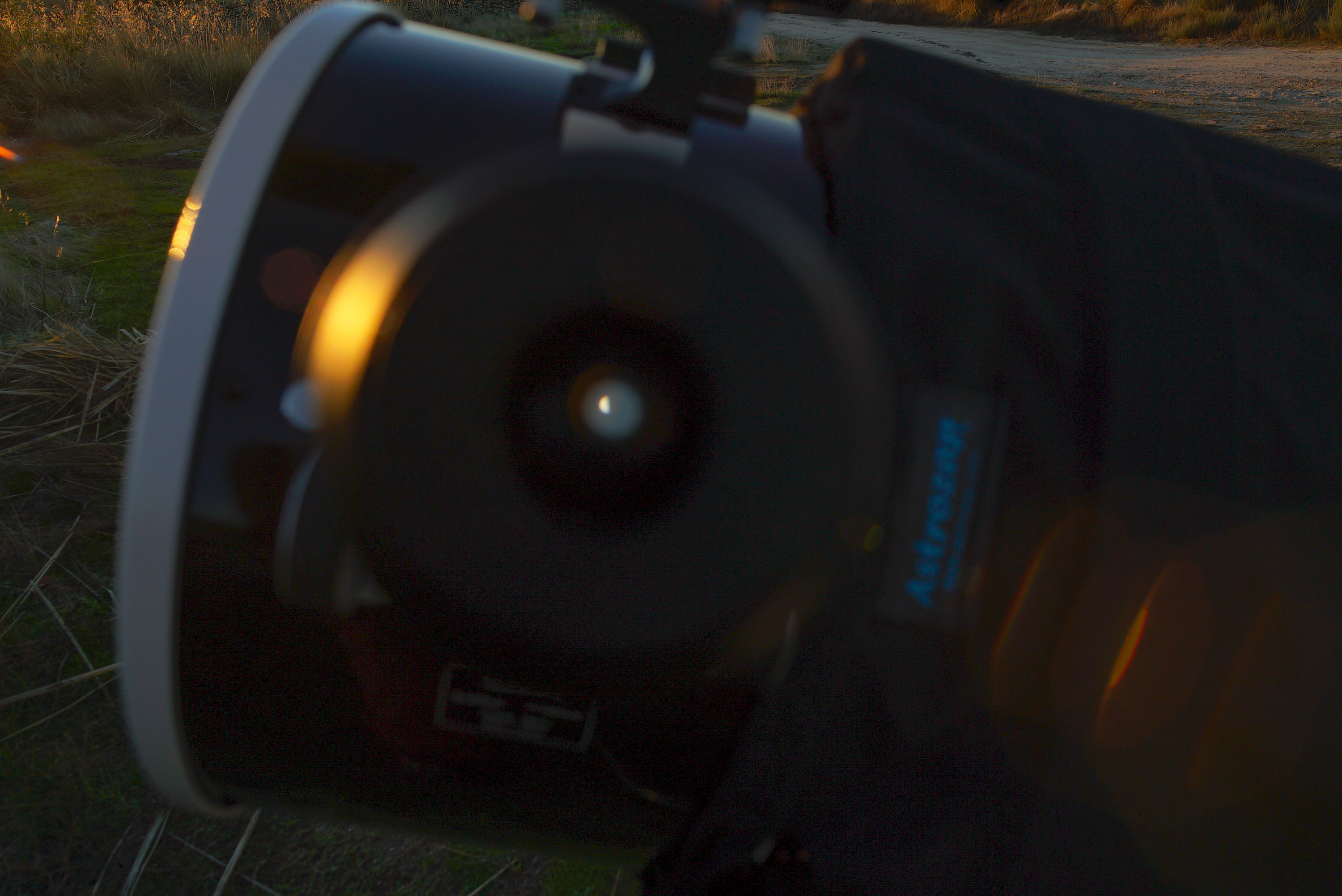 Cuando el sol se iba acercando al horizonte, apunté con el Dobson al planeta Venus e incluso a Júpiter, los cuales los estuve viendo con el Sol aun por encima del horizonte. Incluso saqué unos vídeos y fotos de día de los planetas con el teléfono móvil y el Dobson. Pocos minutos después de que se ocultara el Sol, aproveché para cambiar el tubo y colocar el ED80 para la sesión de astrofotografía.
