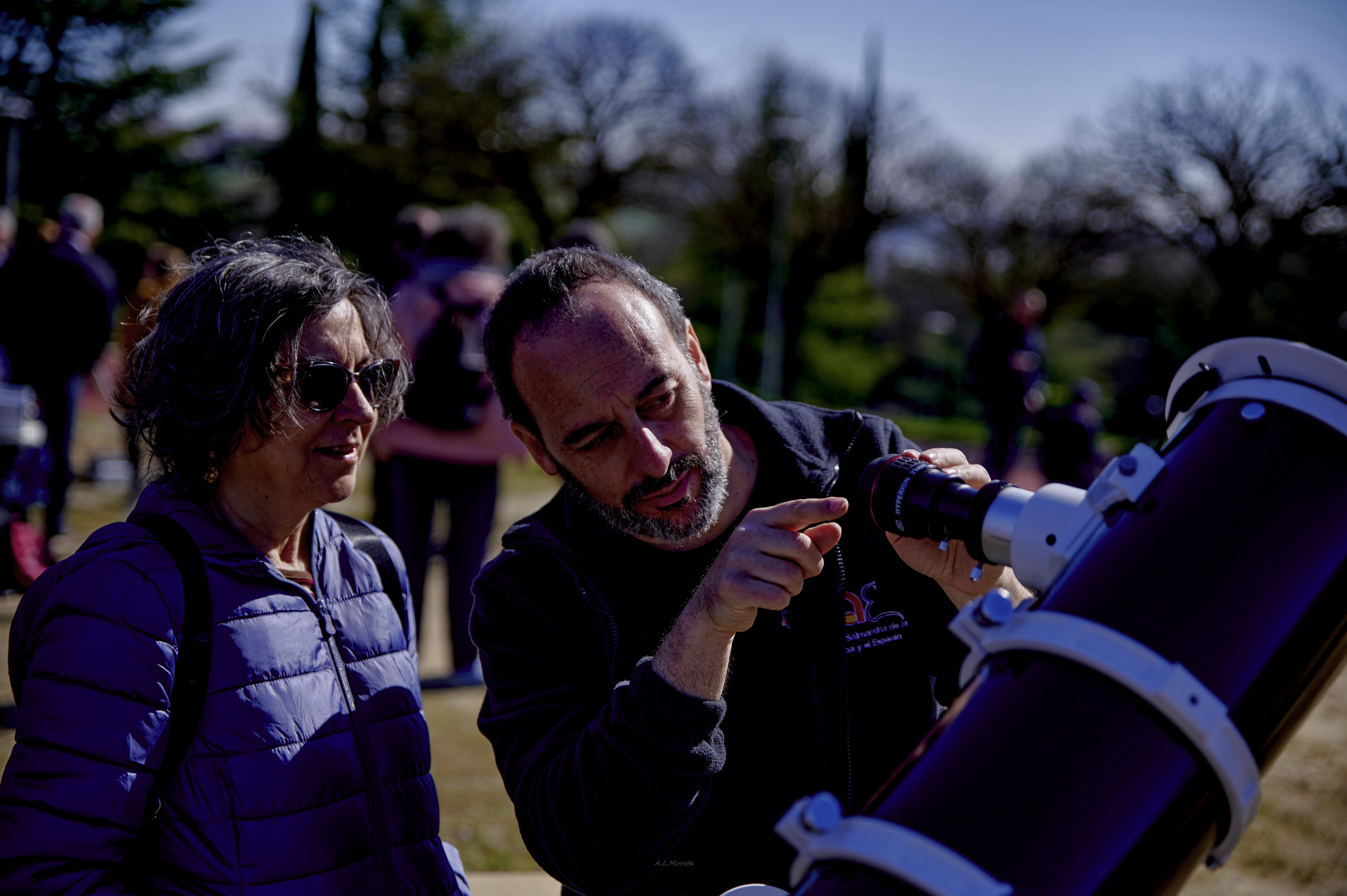 Germán explicando como observar por el telescopio. Foto cortesía de Álvaro L.Moreta |