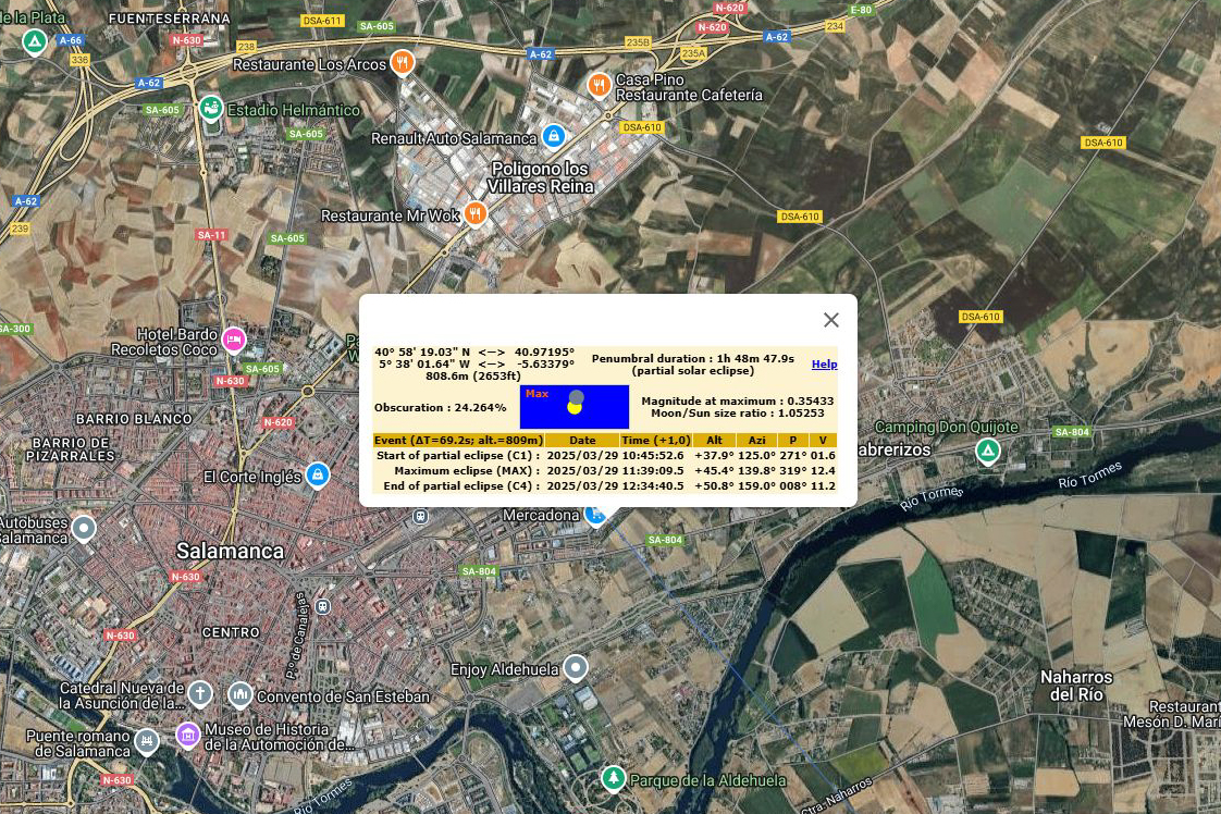 | Coordenadas de observación: | 40° 58' 19" N | eclipse parcial de Sol | ||